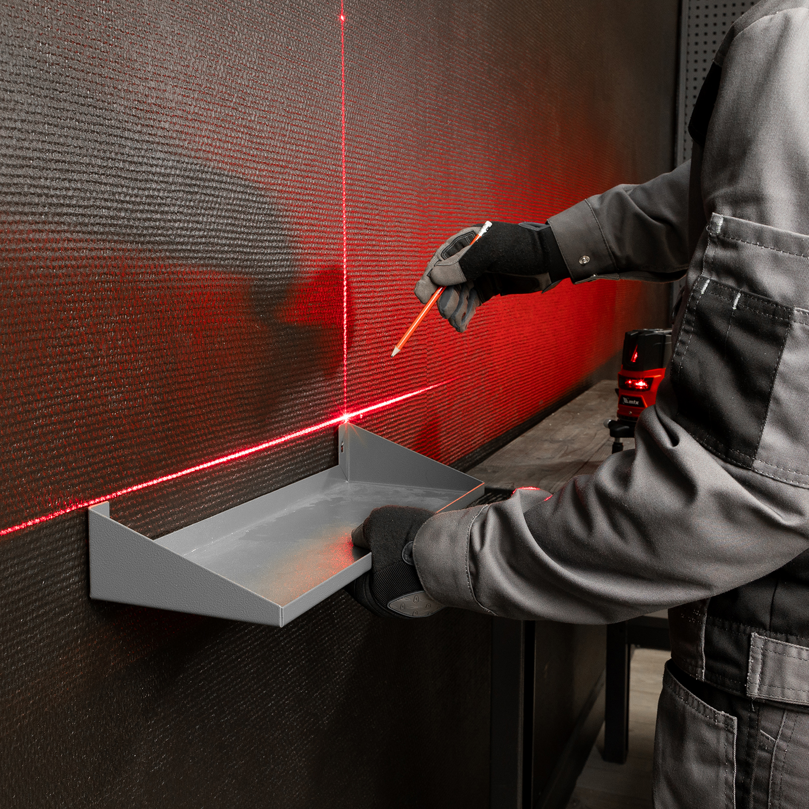 Лазерный уровень MTX CRL-30R 35034 с резьбой 5/8″ под штатив, в комплекте с батарейками, проецирует на поверхность 1 горизонтальный, 4 вертикальных луча красного цвета и точку отвеса дальностью до 30 м. Подходит для бытового применения в помещениях. Погрешность измерений составляет всего ±1,5 мм 5 м.
