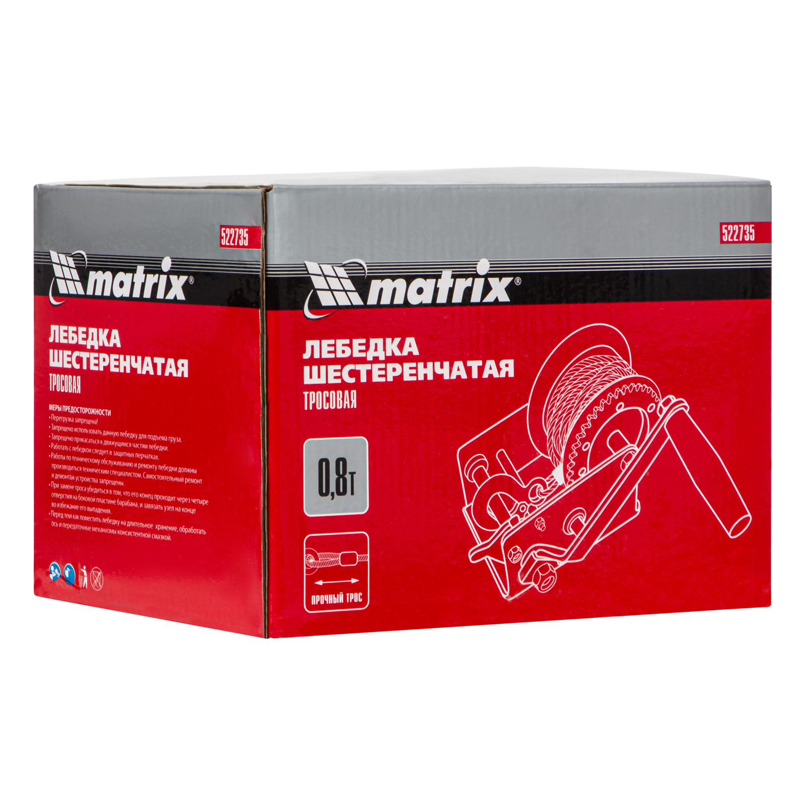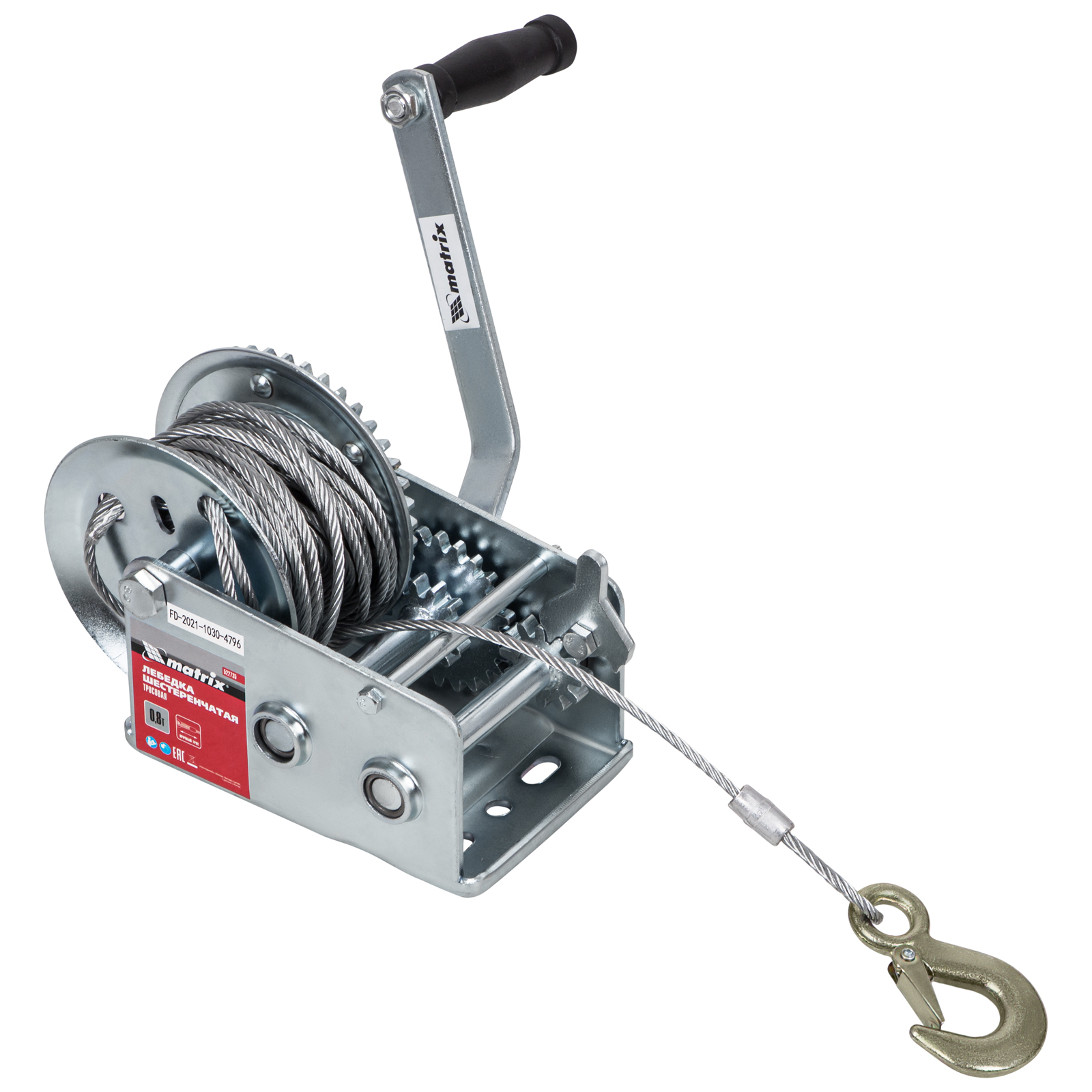Лебедка шестеренчатая, тяга 0.8 т, тросовая Matrix