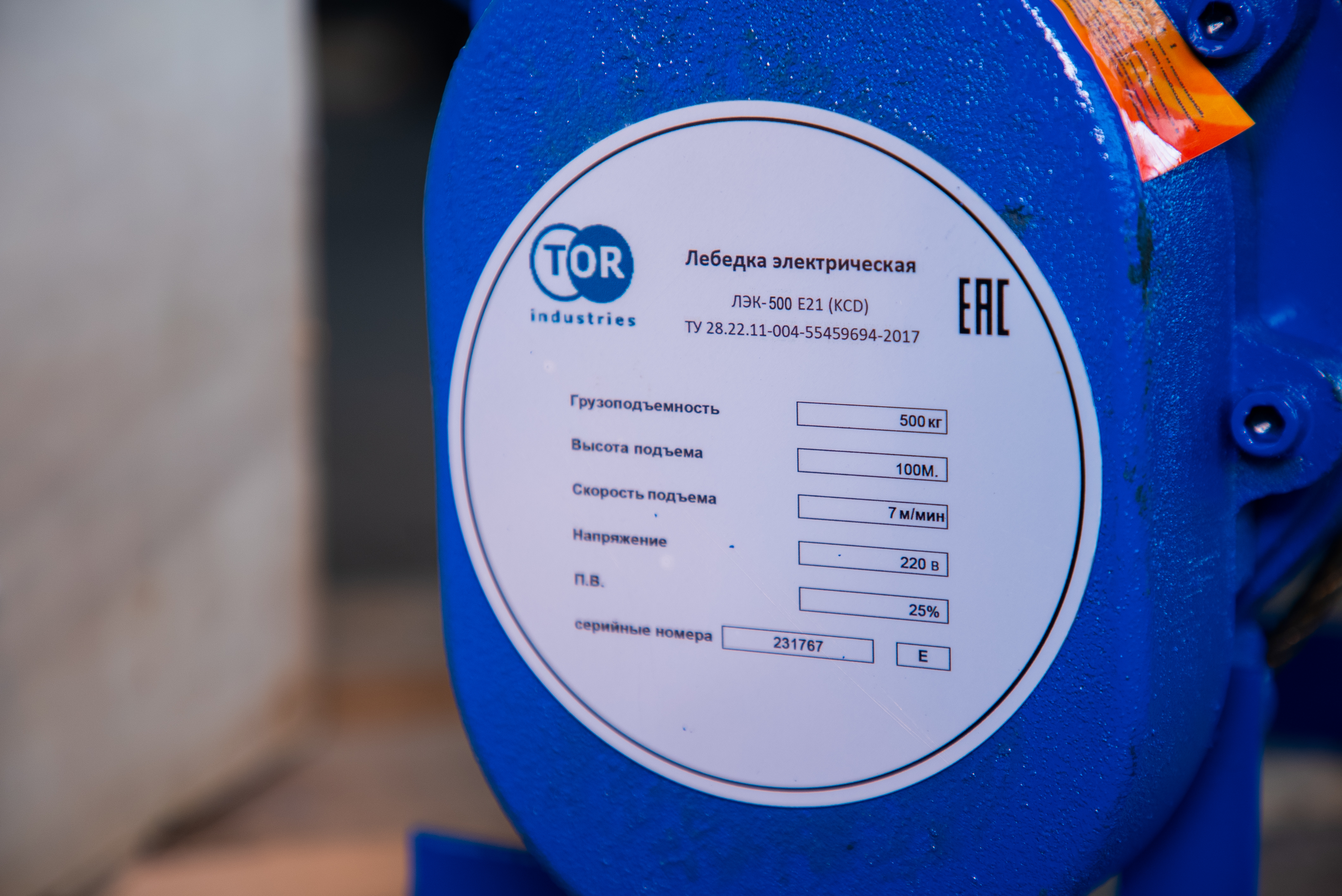 Лебедка электрическая 500 кг 100 м с канатом 220 В TOR KCD*