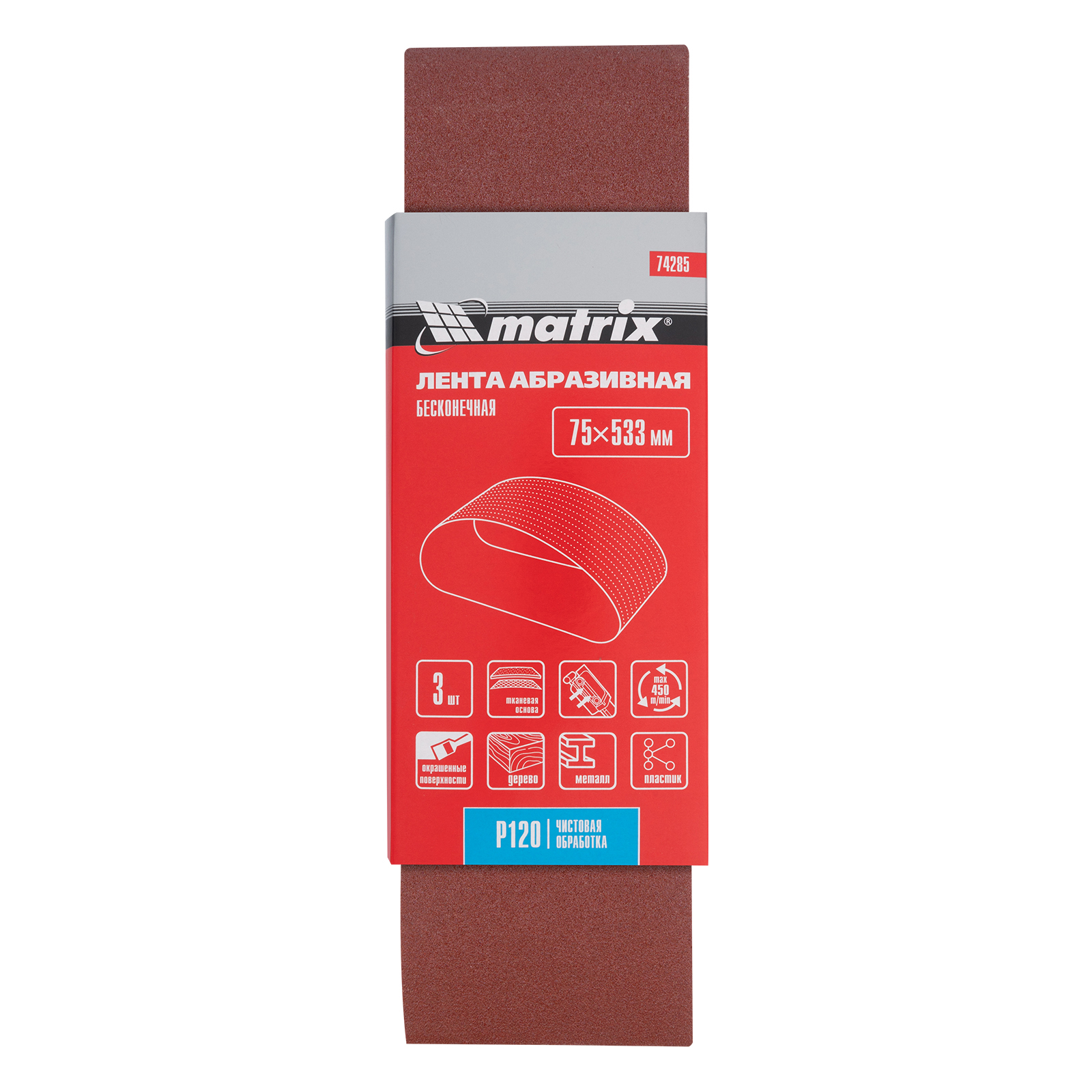 Лента абразивная бесконечная, P 120, 75 х 533 мм, 3 шт Matrix |