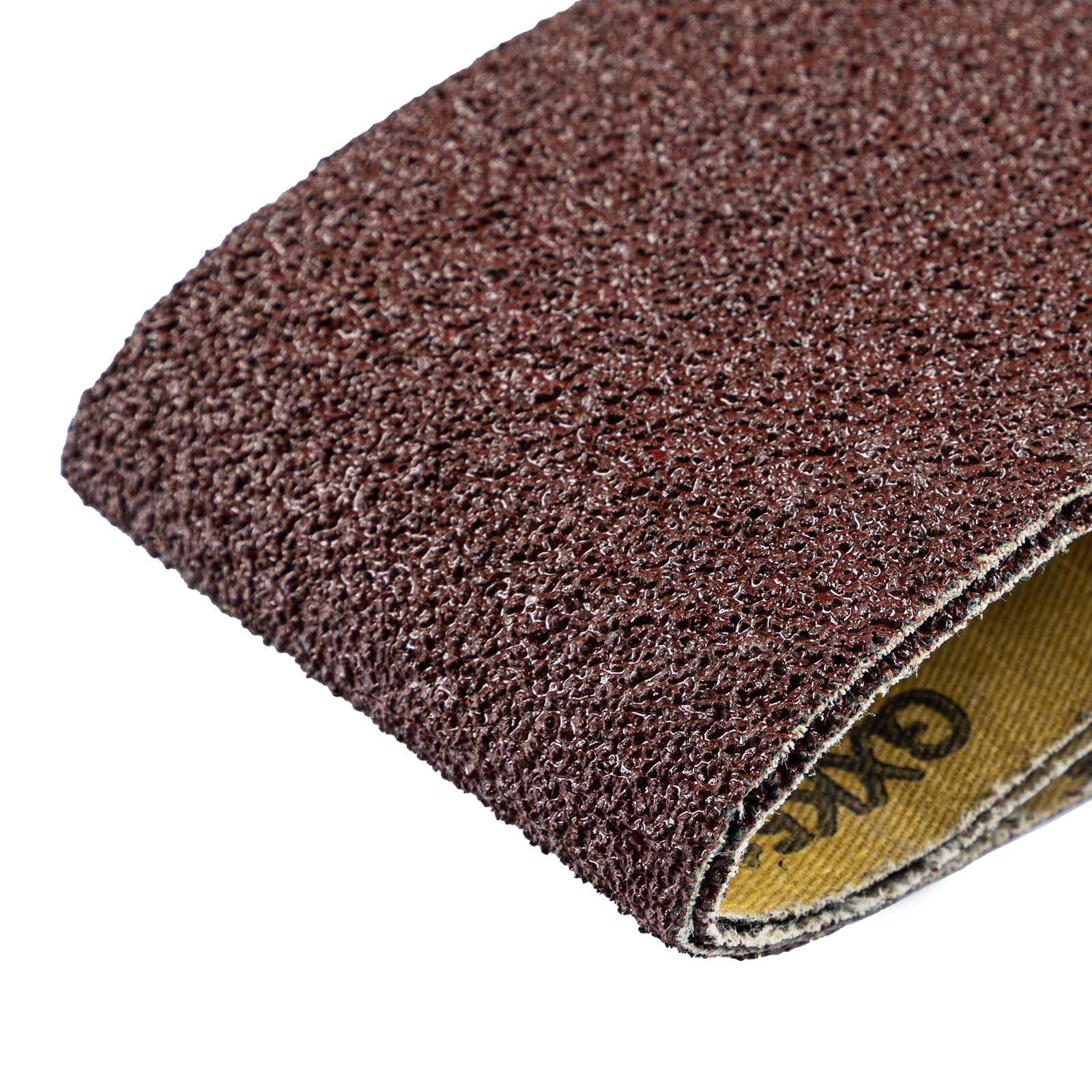 - Высокая скорость обработки — твердое зерно из оксида алюминия имеет заостренную форму, поэтому лента легко снимает большое количество материала.