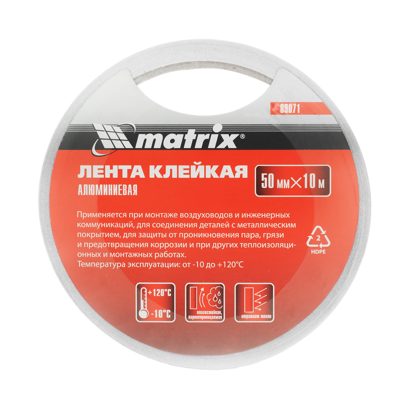 Лента клейкая алюминиевая, 50 мм х 10 м Matrix