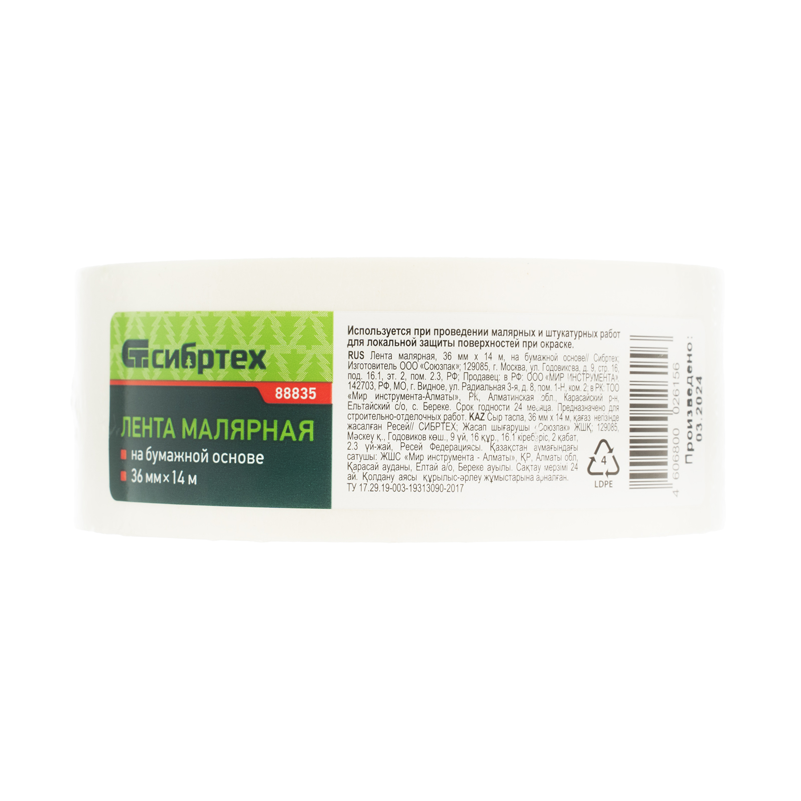 Малярная лента Сибртех 88835 шириной 36 мм и длиной намотки 14 м, на бумажной основе, пригодится для внутренних малярных работ с ЛКМ любого типа, а также для склеивания книг, альбомов и других бумажных предметов. Повышает качество окрашивания, т.к. предотвращает растекание краски, при этом надежно клеится и без труда удаляется, не оставляя следов на поверхностях.
