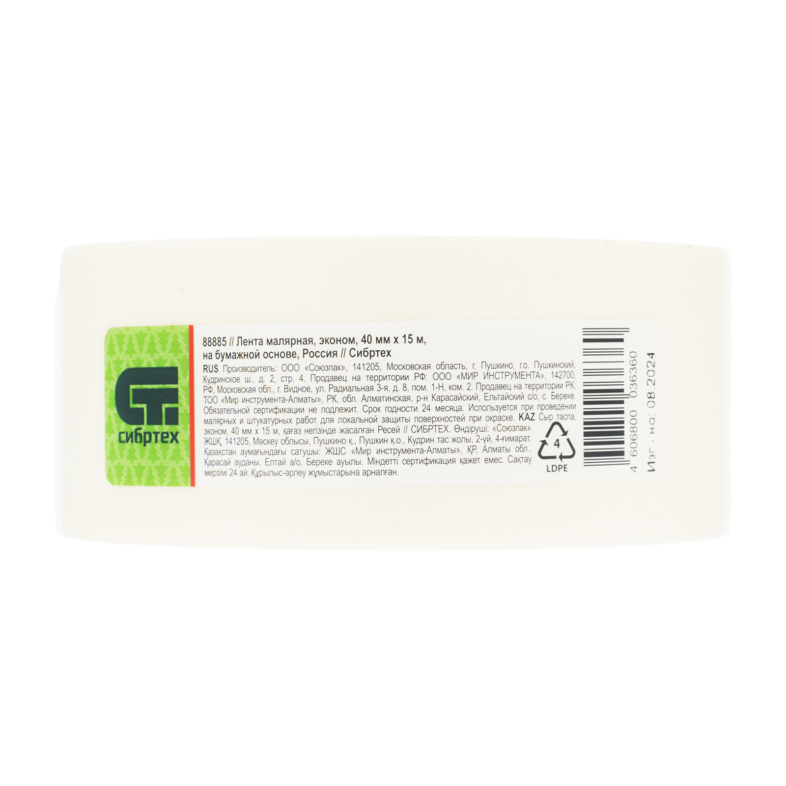 Лента малярная, эконом, 40 мм x 15 м, на бумажной основе Сибртех