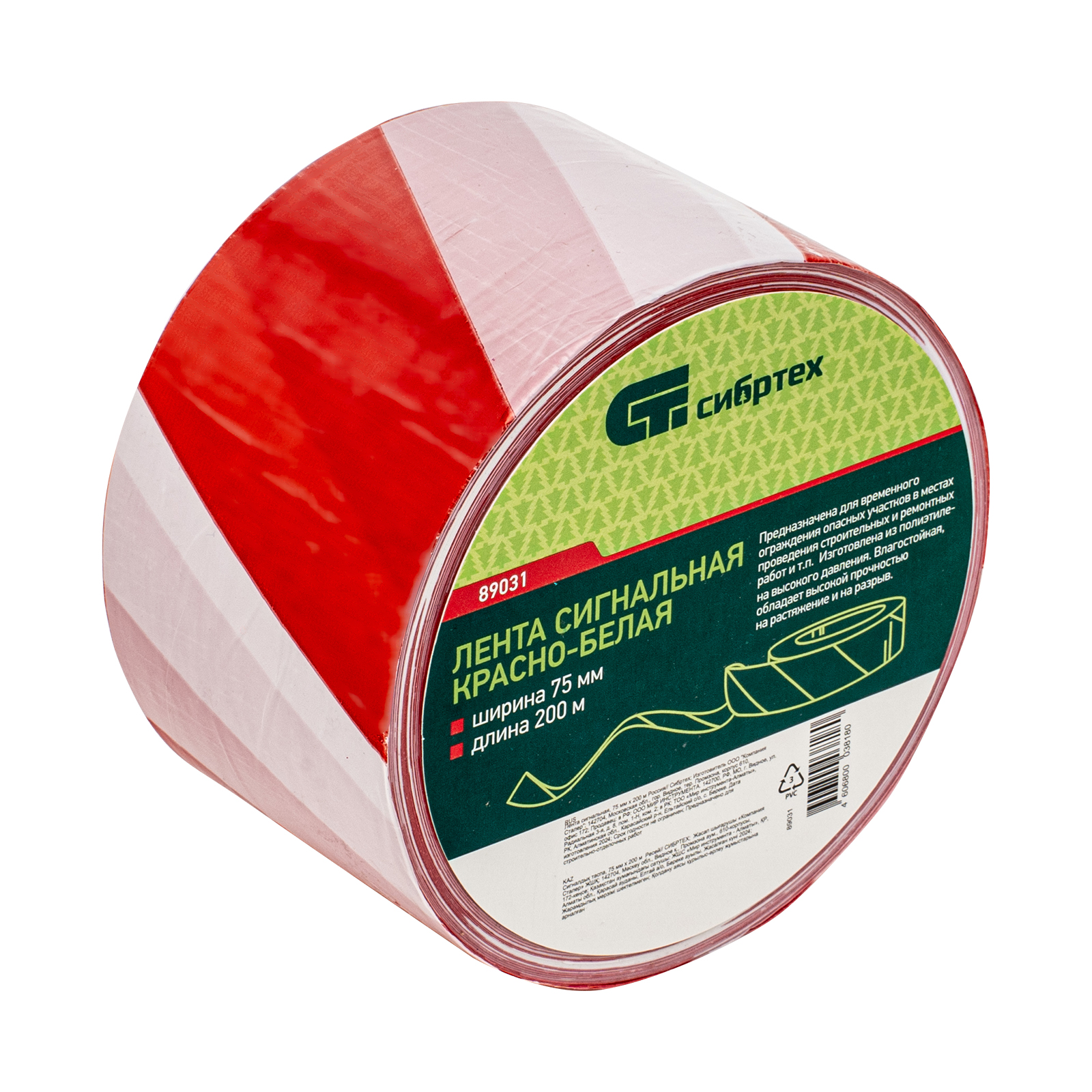 Сигнальная лента Сибртех 89031 шириной 75 мм, 200 м в намотке, позволяет оградить опасную зону на строительной площадке, в парке, на дороге и т.д. Красно-белая лента используется для обозначения временной опасности. Она видна издалека, что позволяет направить поток людей в другую сторону, перекрыв доступ к участку.