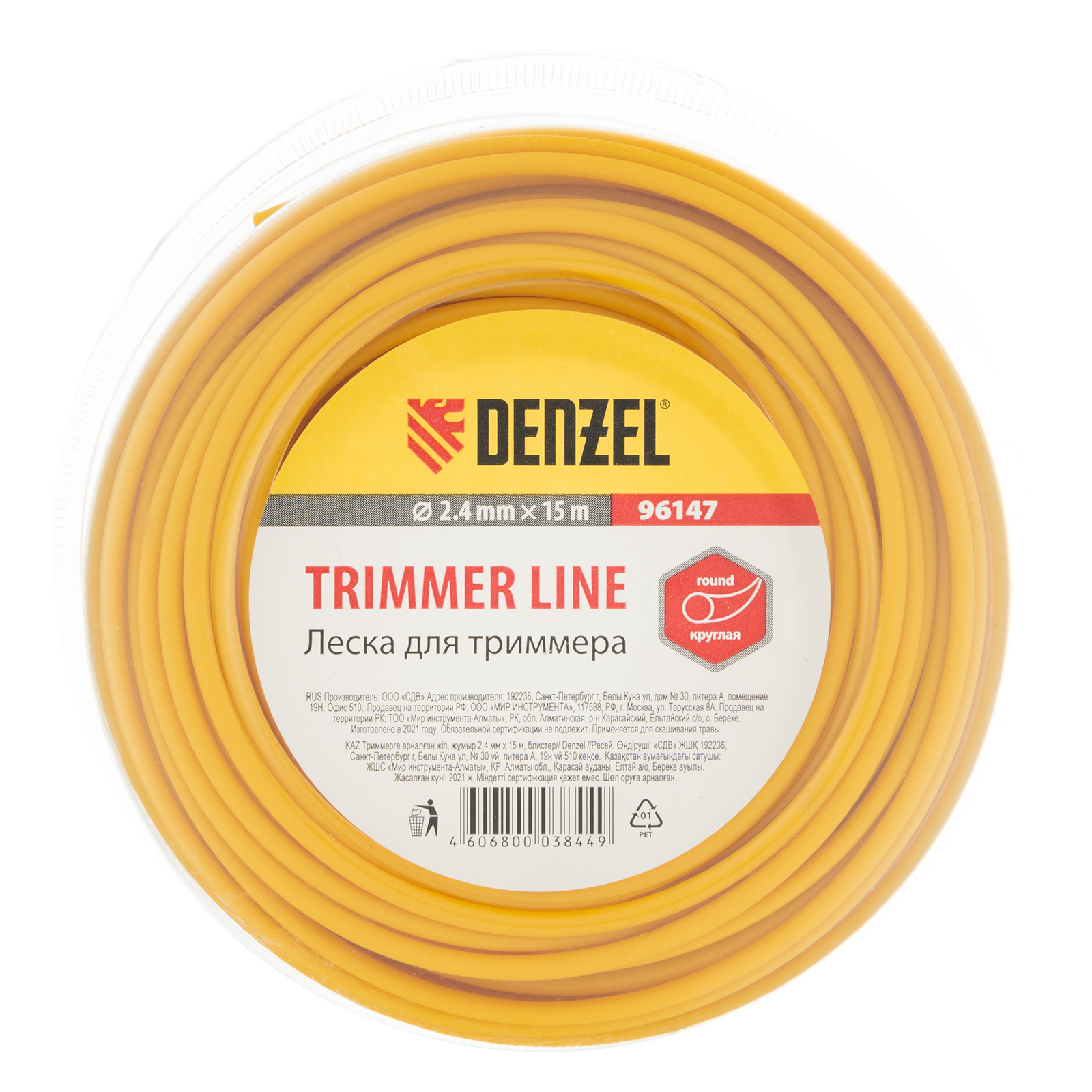 Леска для триммера круглая, 2.4 мм х 15 м Denzel
