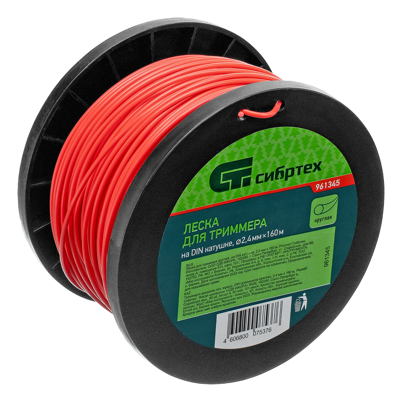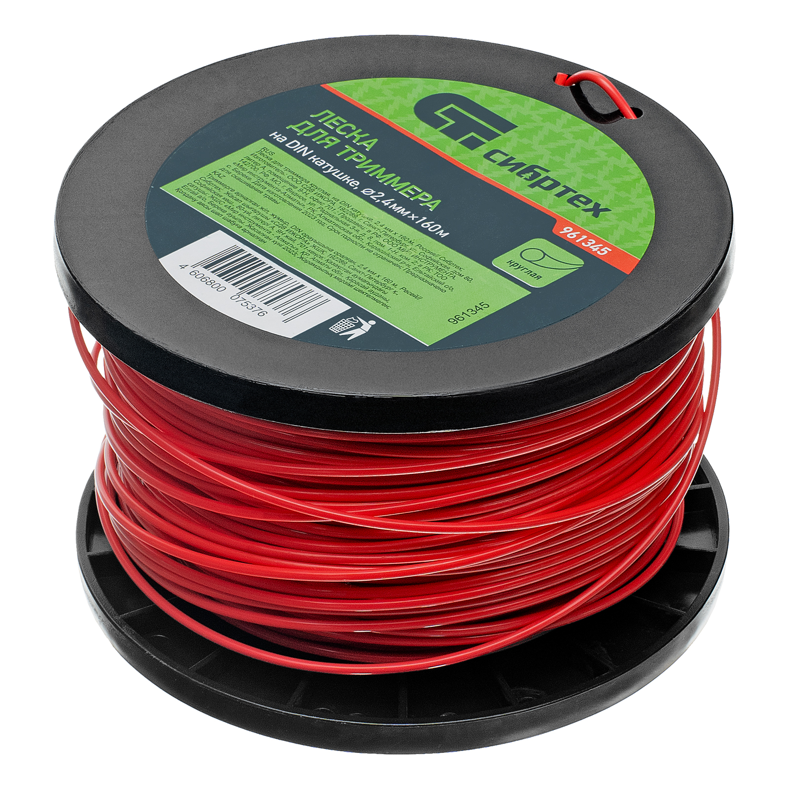 Леска для триммера круглая, на DIN катушке, 2.4 мм х 160 м, Сибртех