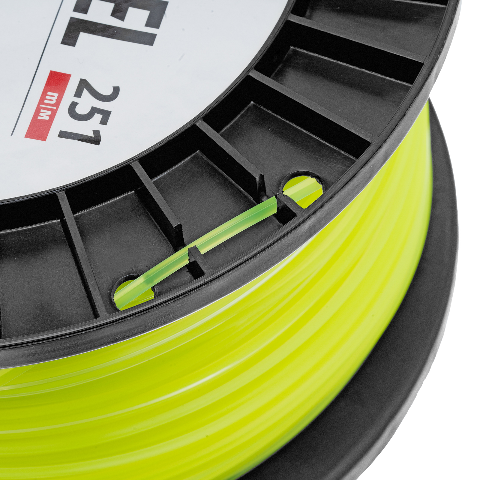 - Удобное хранение и транспортировка — концы лески можно закрепить в отверстиях DIN-катушки.