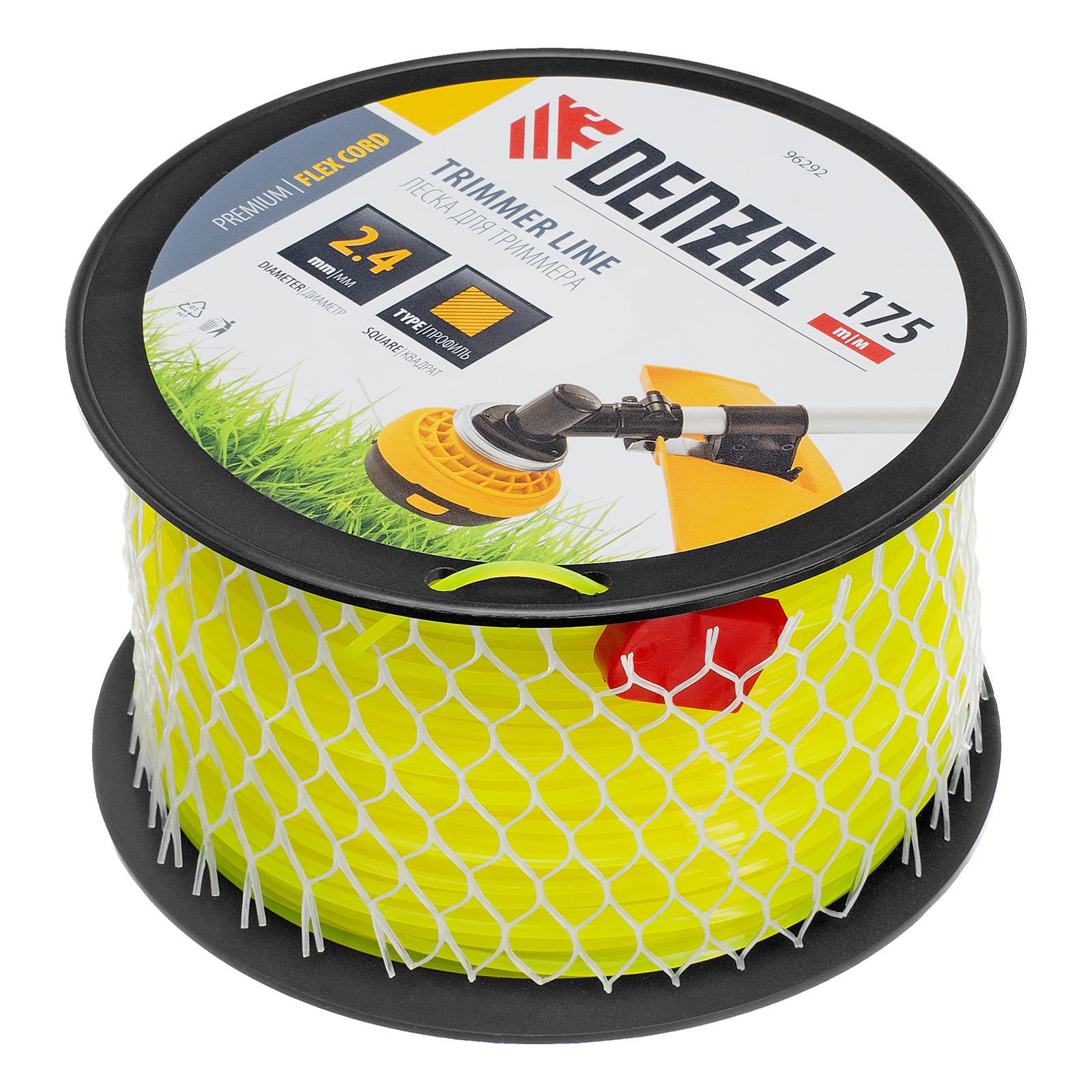 Леска для триммера квадрат, 2,4мм х 175м, на DIN катушке FLEX CORD Denzel