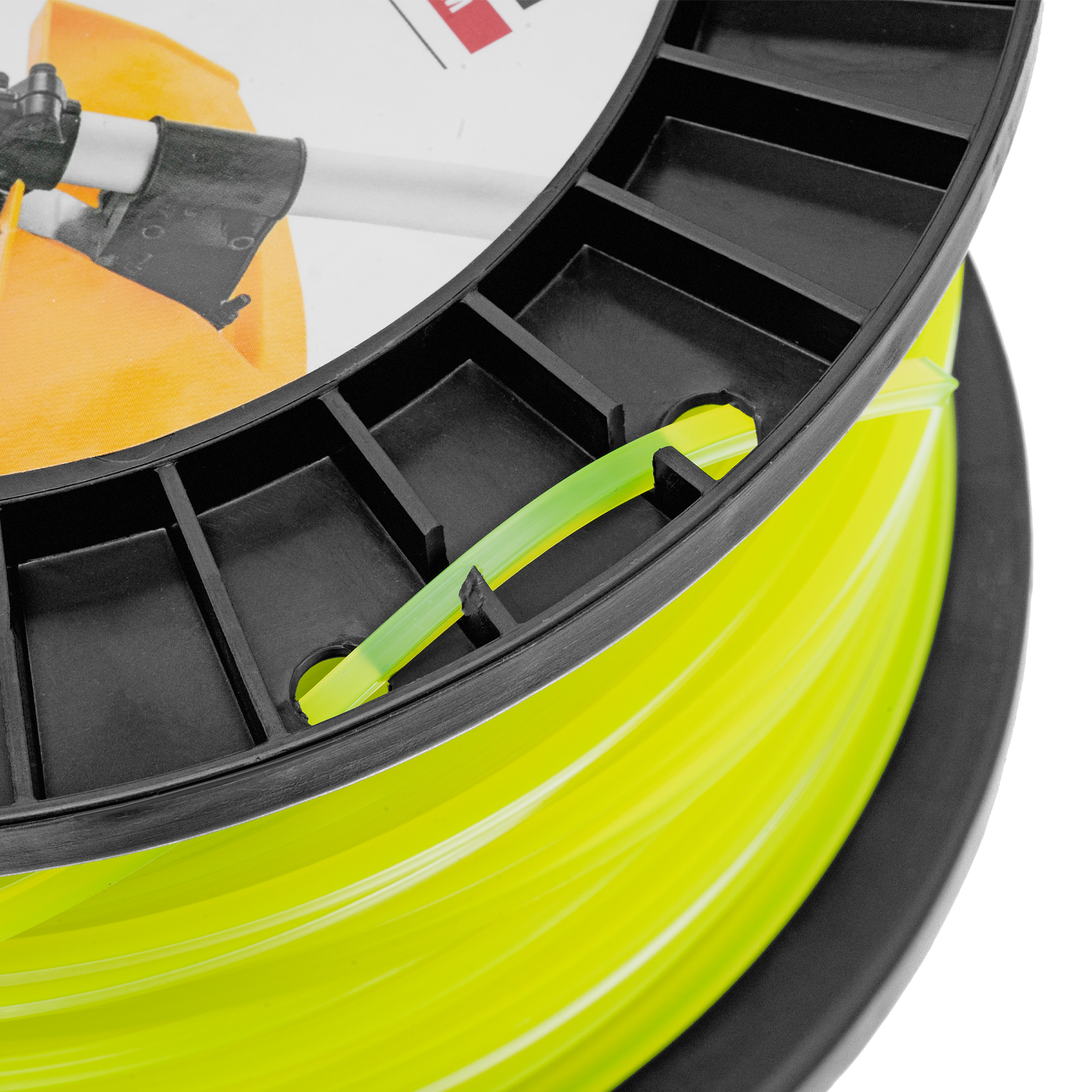- Удобное хранение и транспортировка — концы лески можно закрепить в отверстиях DIN-катушки.