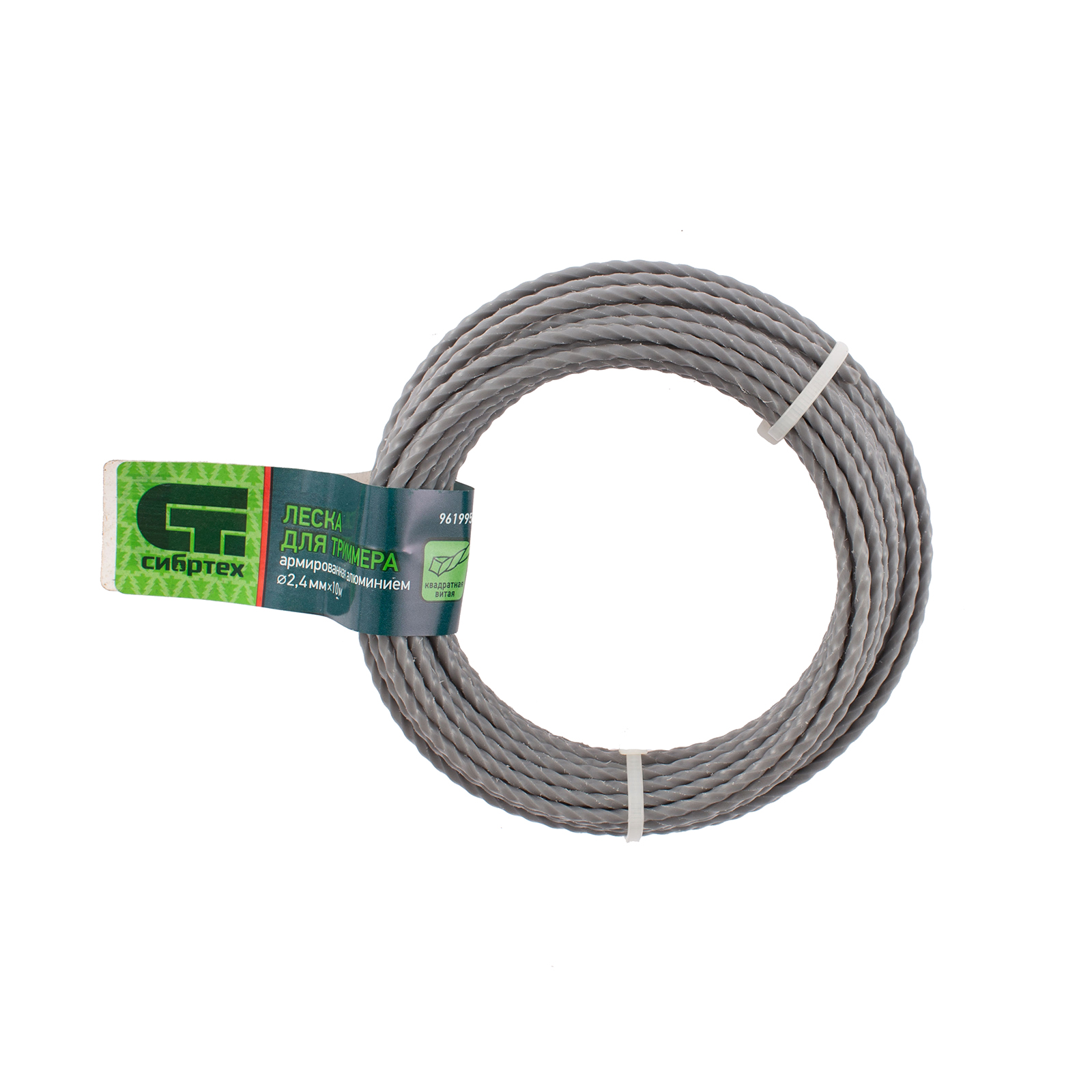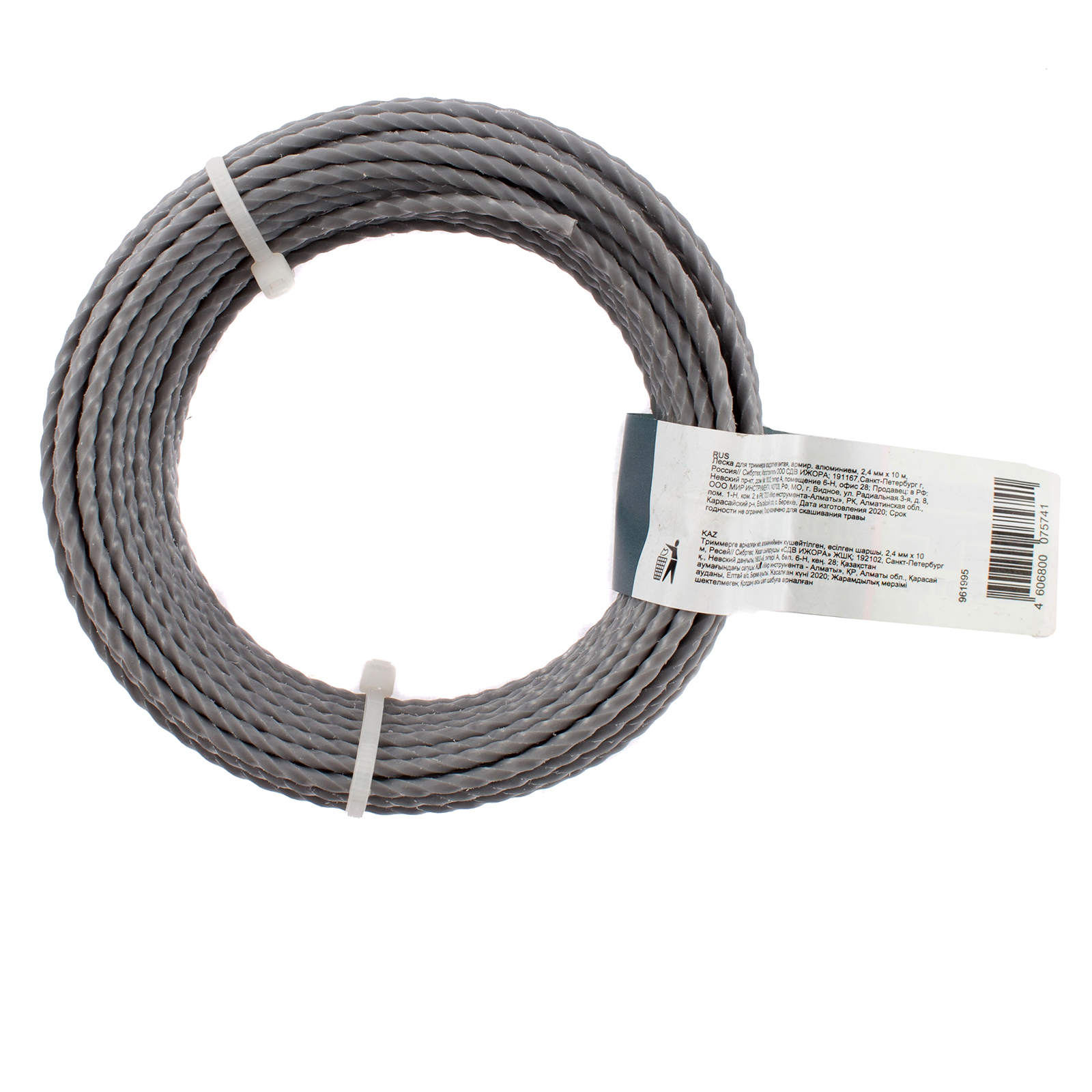 Леска для триммера квадратная витая, армированная алюминием, 2.4 мм х 10 м, Сибртех