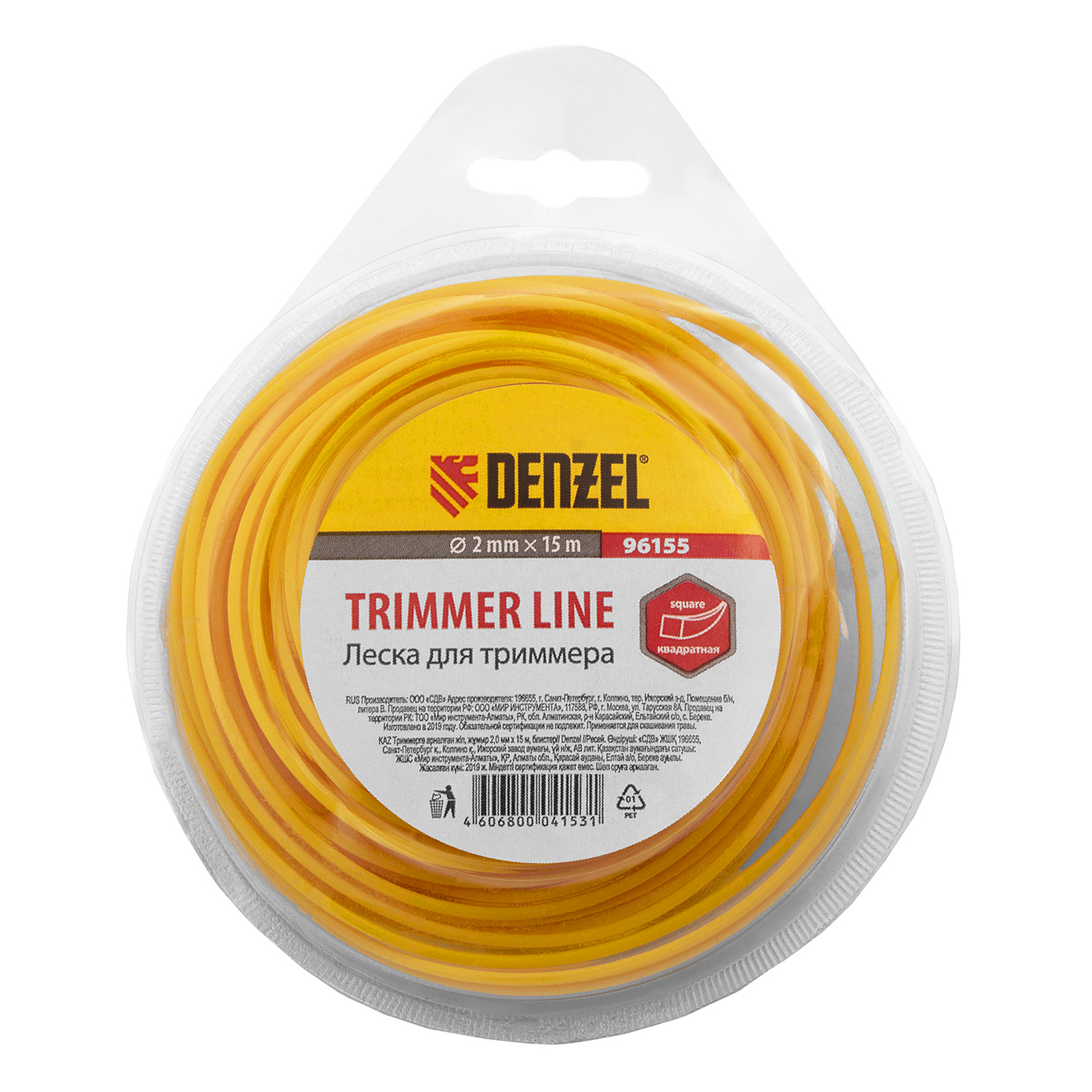 Леска для триммера квадратная, 2 мм х 15 м Denzel