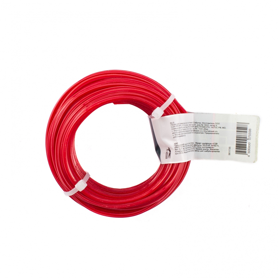 Леска для триммера Сибртех 961735 с сечением «звезда», толщиной 2,4 мм и длиной 15 м заправляется в триммерную катушку и совместима с электро- и бензокосам. Подходит для стрижки газона, борьбы с сорняками и сухой травой, для скашивания бурьяна, молодых кустарников. Используется для ухода за придомовой территорией.