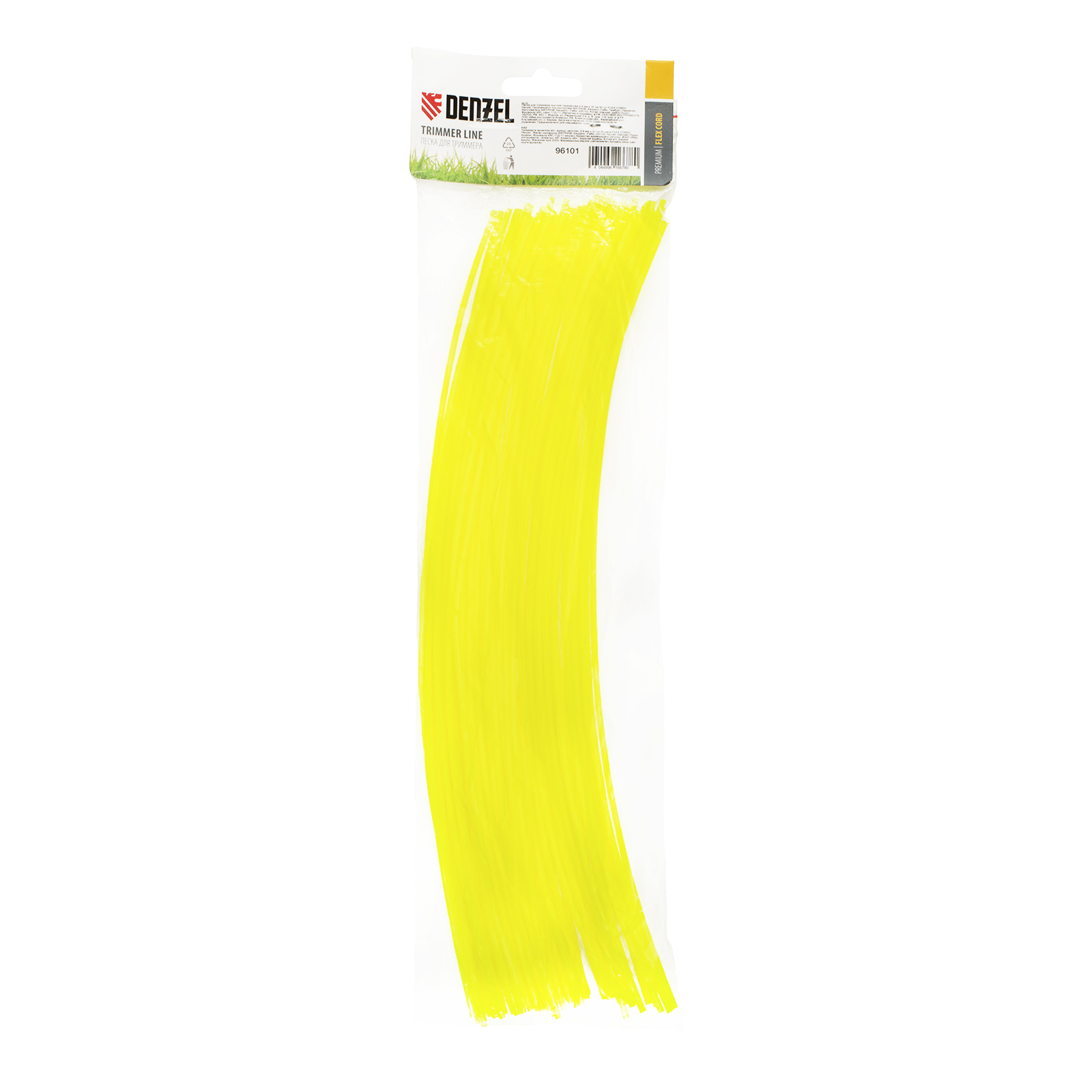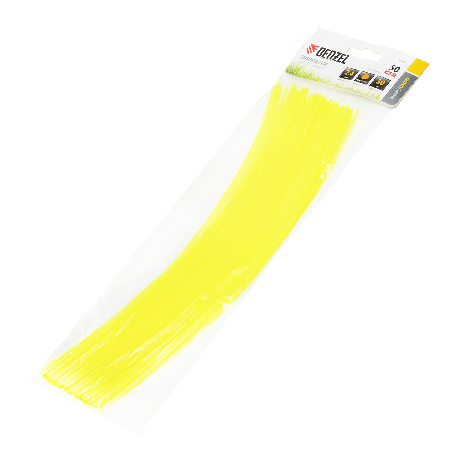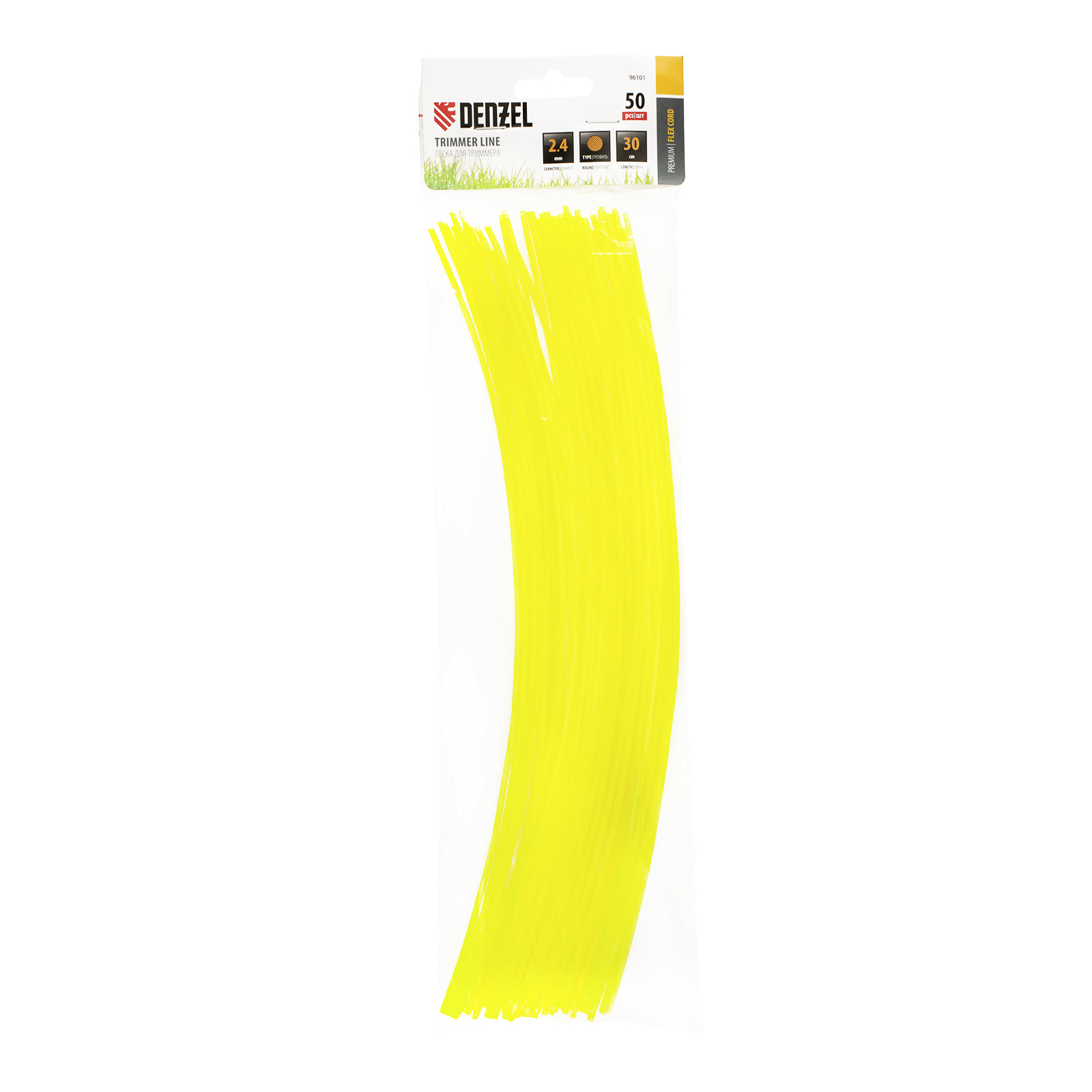 Круглая нарезанная леска для триммера Denzel FLEX CORD 96101 диаметром 2,4 мм и длиной 30 см поставляется упаковками по 50 шт., заправляется в триммерную головку и предназначена для срезания растительности. Используется для скашивания газонной или густой травы, а также сорняков с толстыми стеблями. Подходит для электротриммеров мощностью 1-1,4 кВт и бензотриммеров.