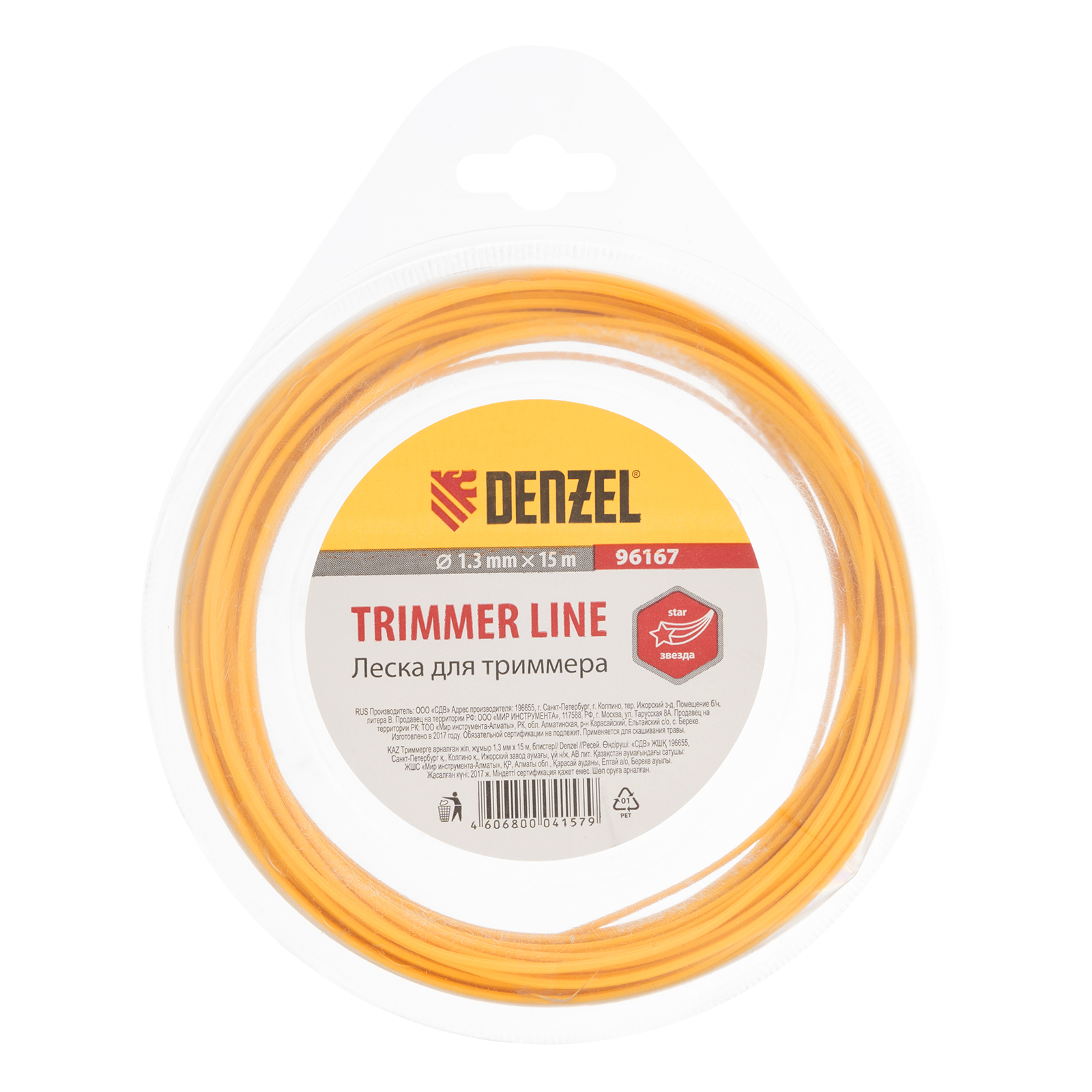 Леска для триммера, звезда, 1.3 мм х 15 м Denzel