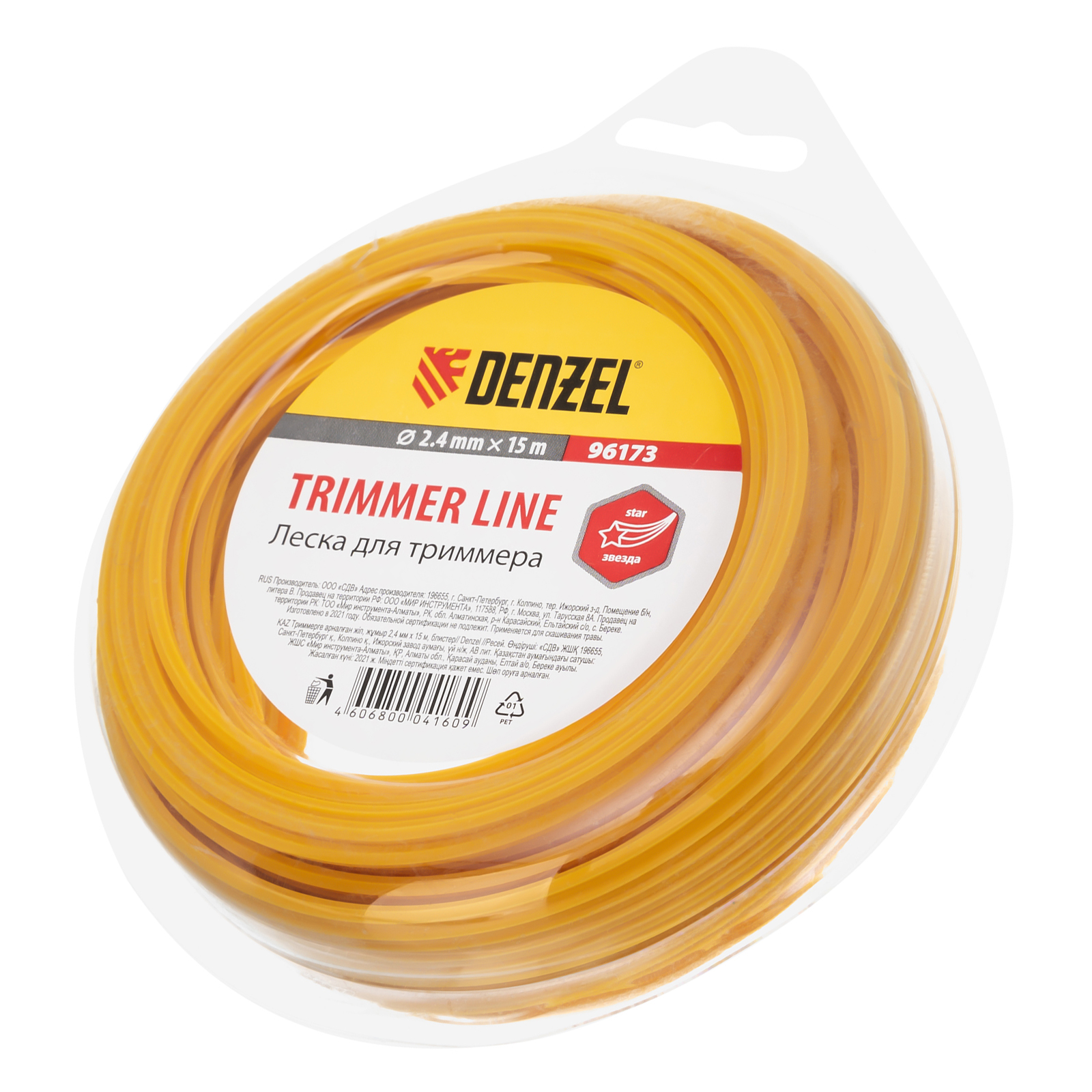 Леска для триммера, звезда, 2.4 мм х 15 м Denzel