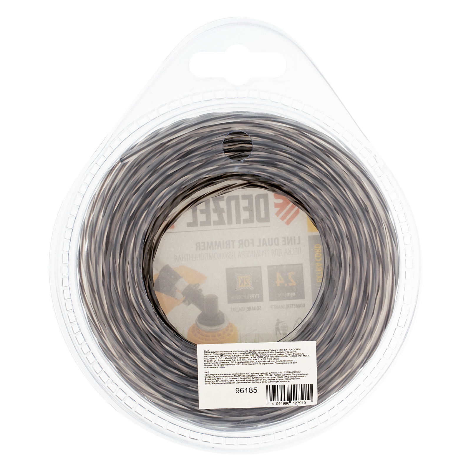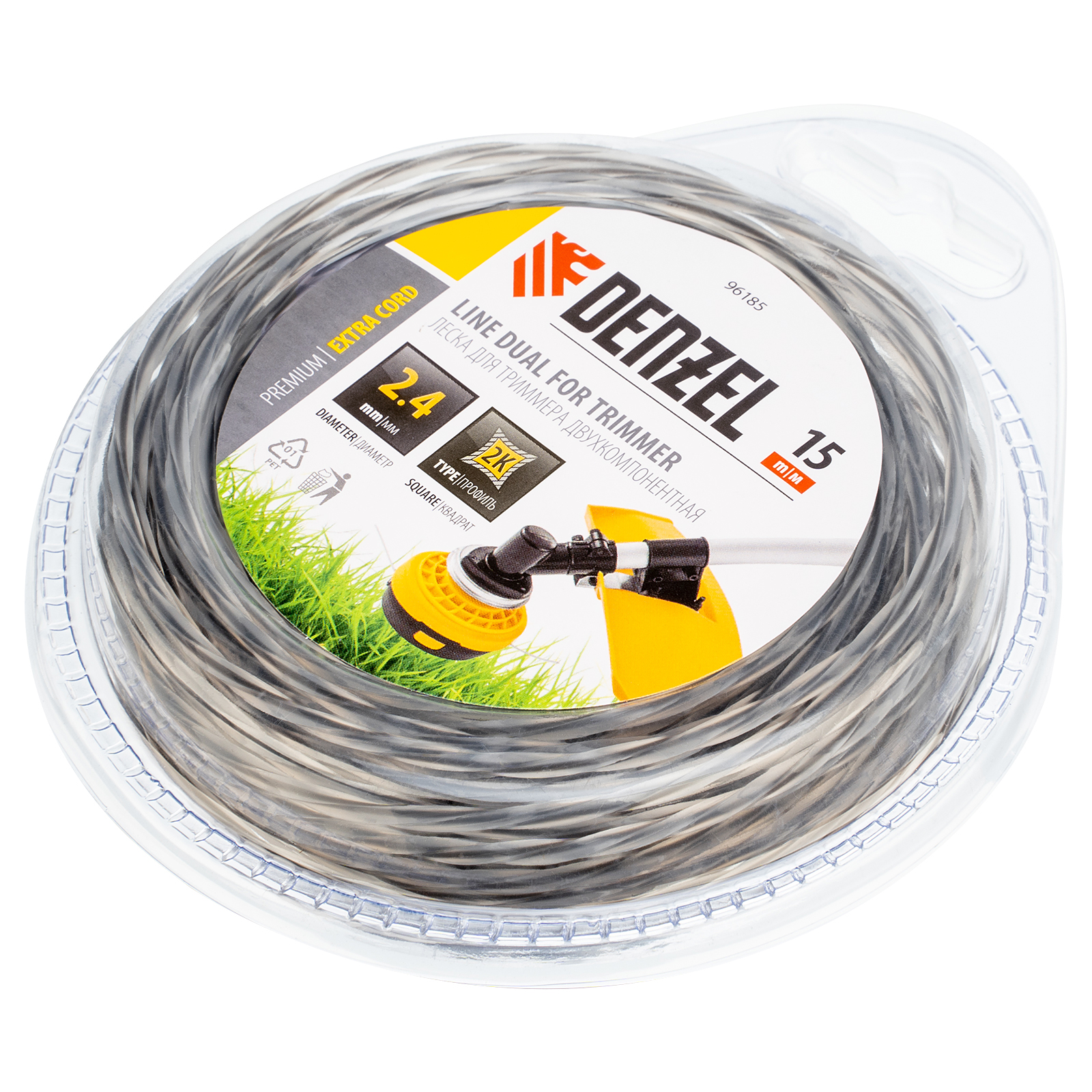 Леска двухкомпонентная для триммера квадратная витая, 2.4 мм х 15 м, EXTRA CORD Denzel