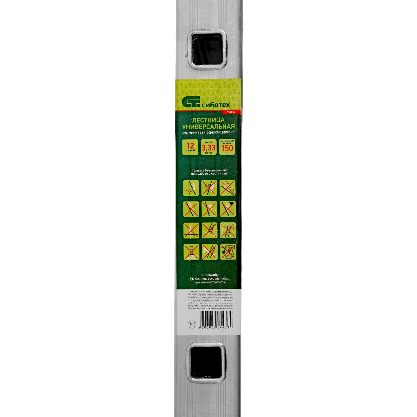 Приставная лестница Сибртех 97832 с 12 ступенями не требует сборки — она готова к использованию сразу после приобретения. Будет полезна в различных сферах, начиная от бытового применения, заканчивая эксплуатацией коммунальными службами и работниками магазинов.