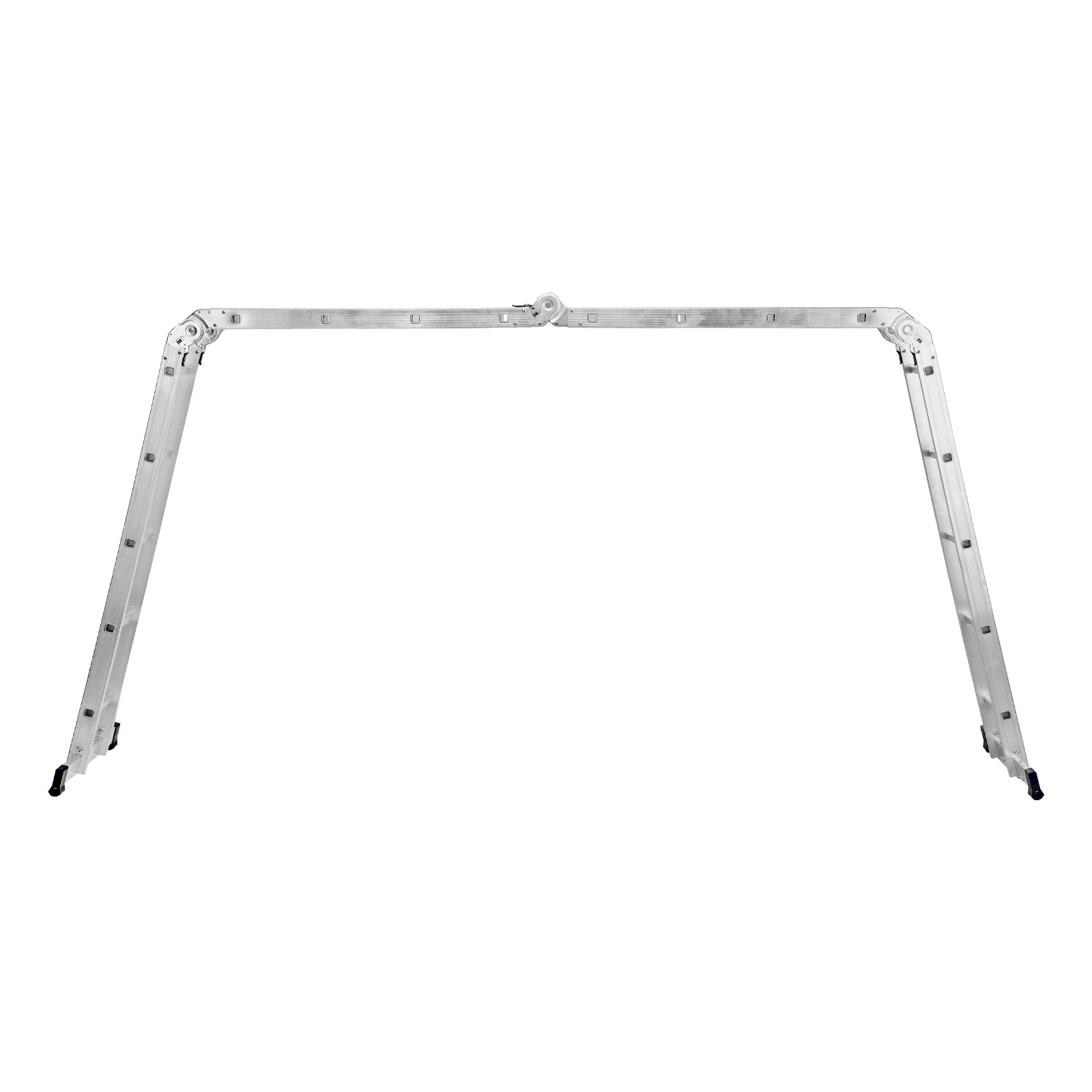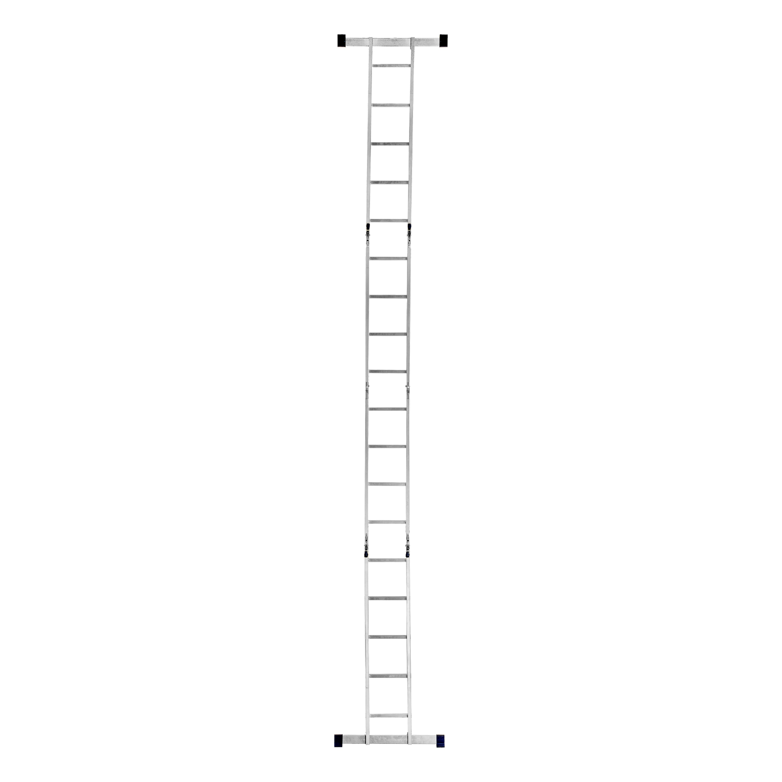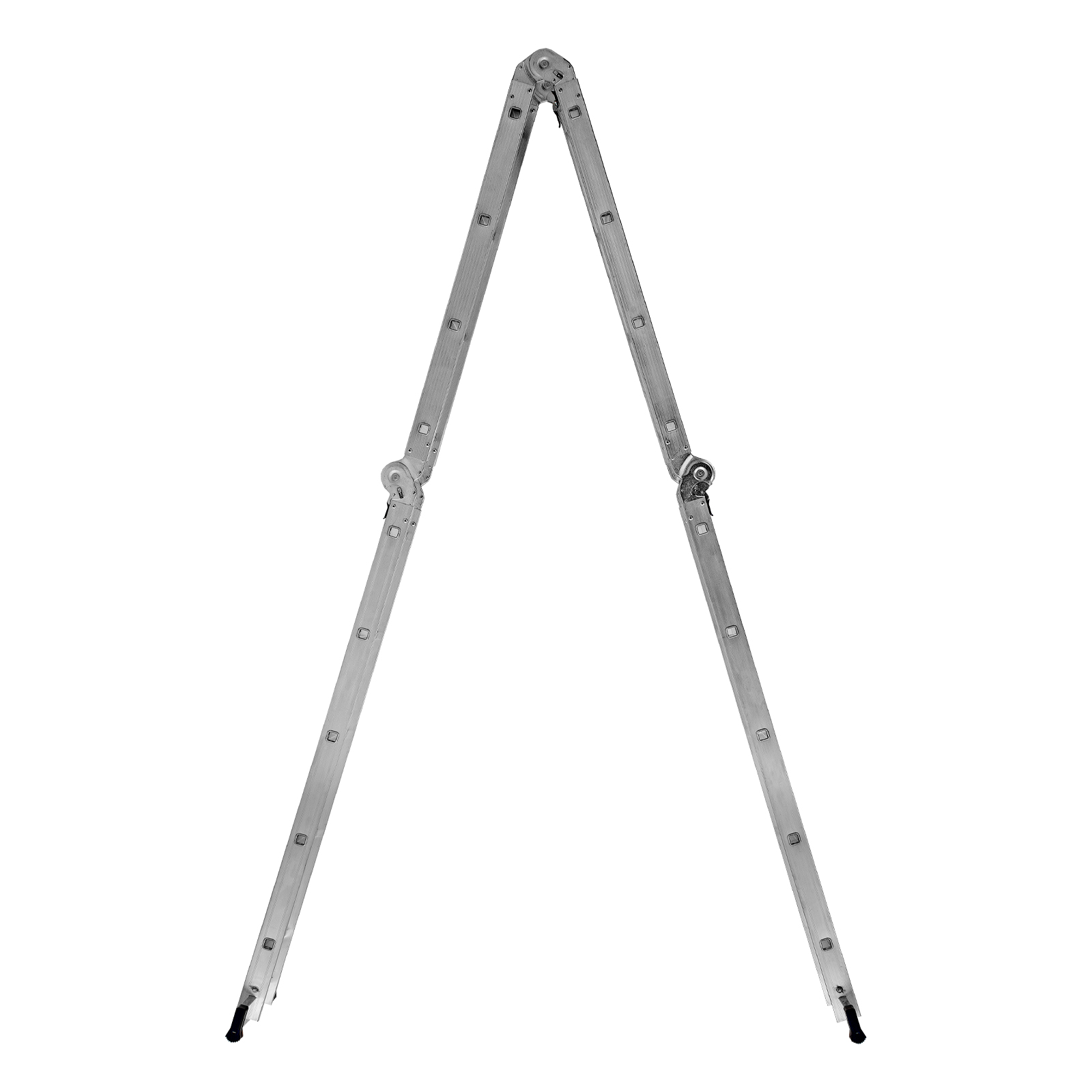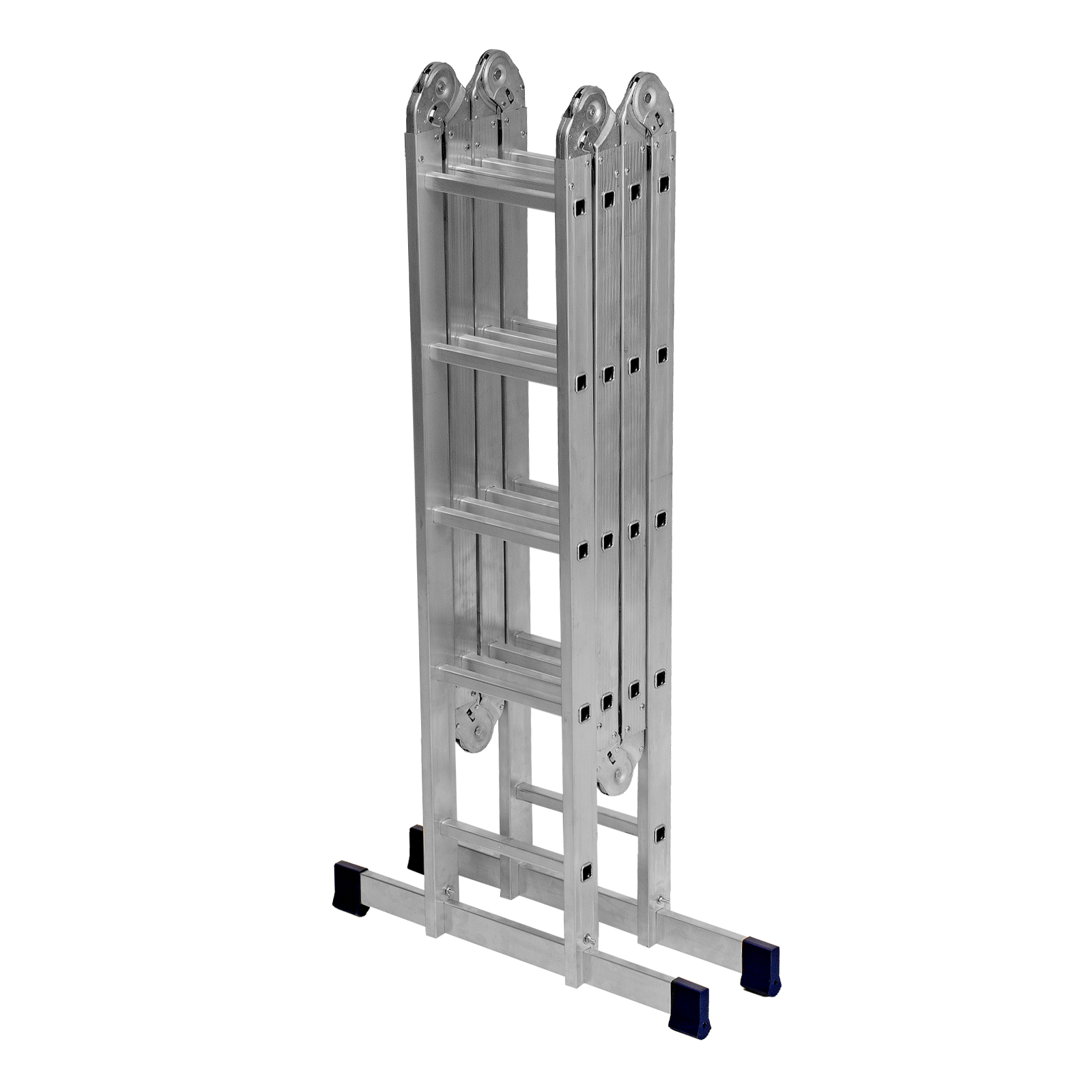 Шарнирная алюминиевая лестница Сибртех 97884 представляет собой 2 секции по 4 ступени и 2 секции по 5 ступеней, которые можно настроить в нескольких рабочих положениях. Она может использоваться в качестве приставной лестницы, двухсторонней стремянки и помоста. Будет полезна как в быту, так и на небольших стройках, в гараже и магазинах.