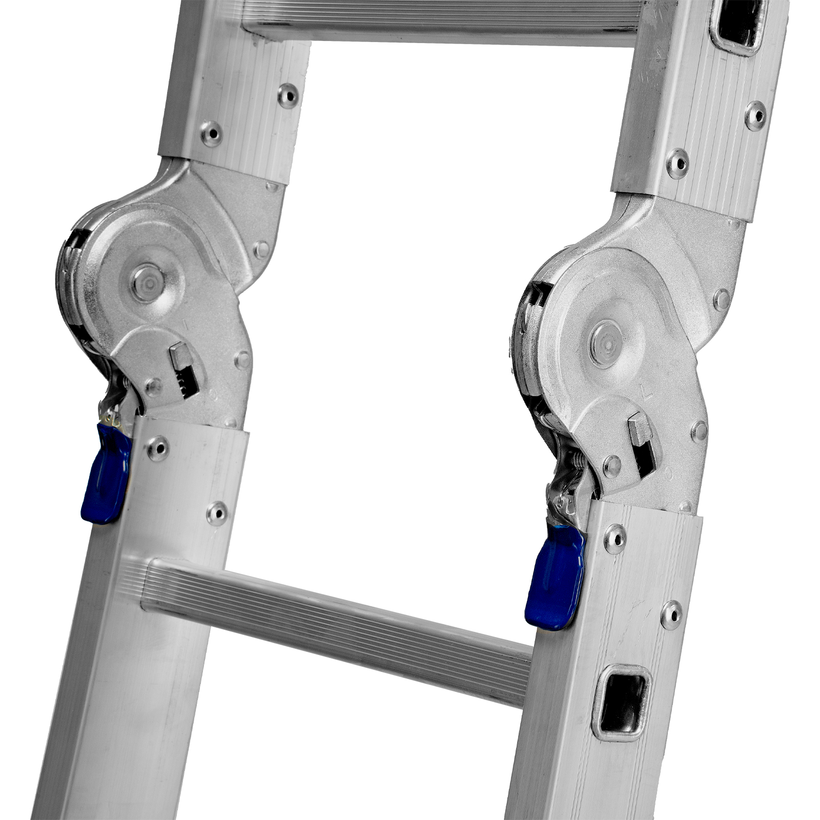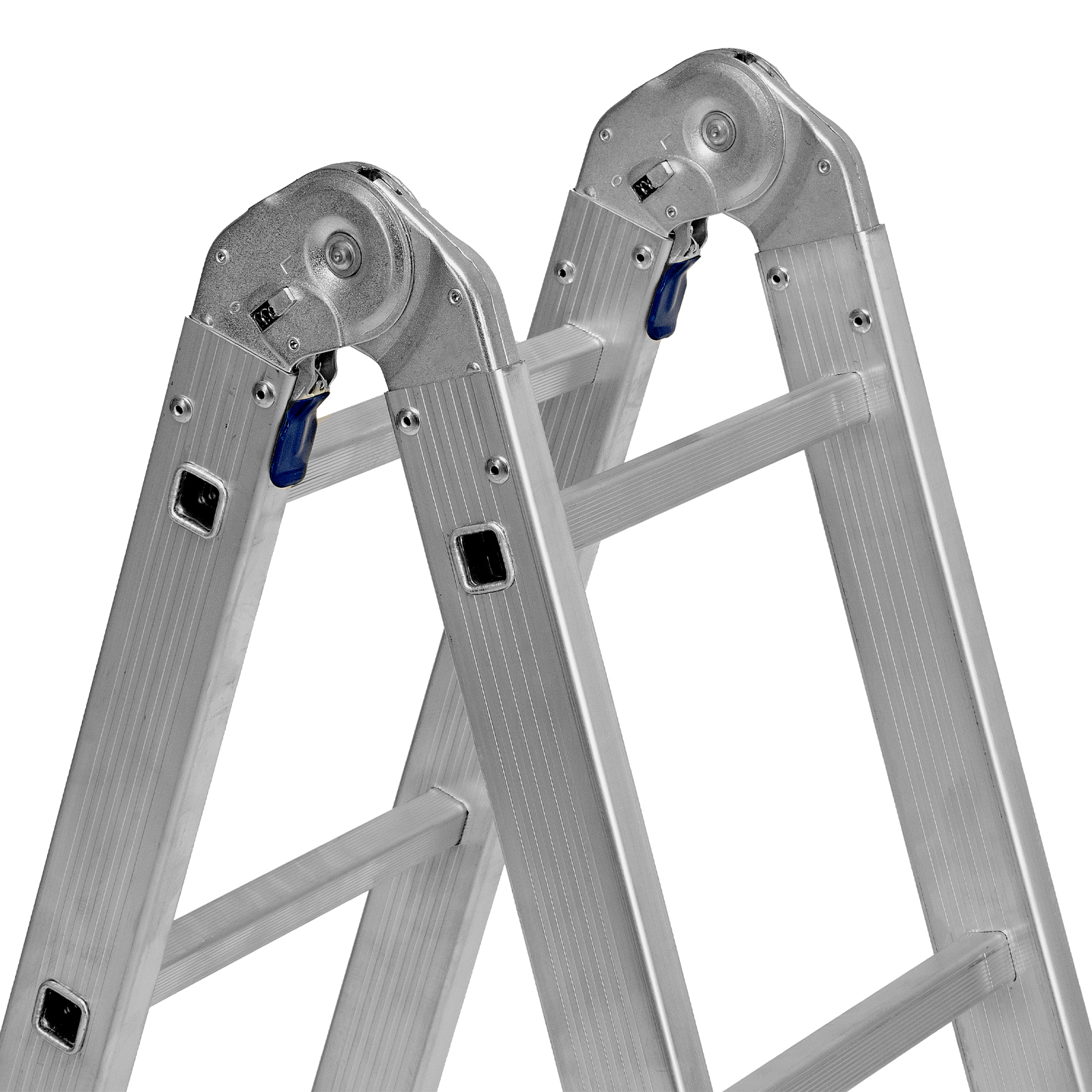 - Надежные шарнирные механизмы — лестница не шатается в рабочих положениях, смена рабочих положений происходит быстро и легко.