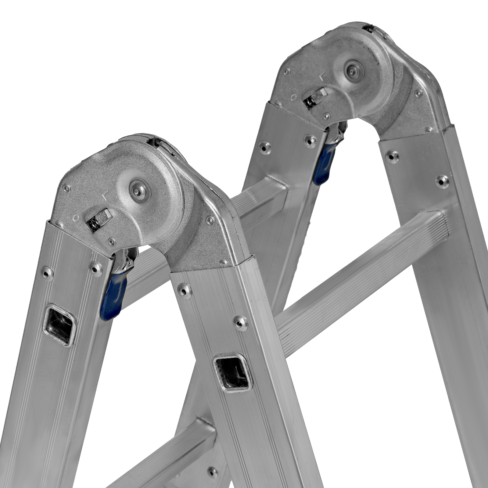 - Надежные шарнирные механизмы — лестница не шатается в рабочих положениях, смена рабочих положений происходит быстро и легко.