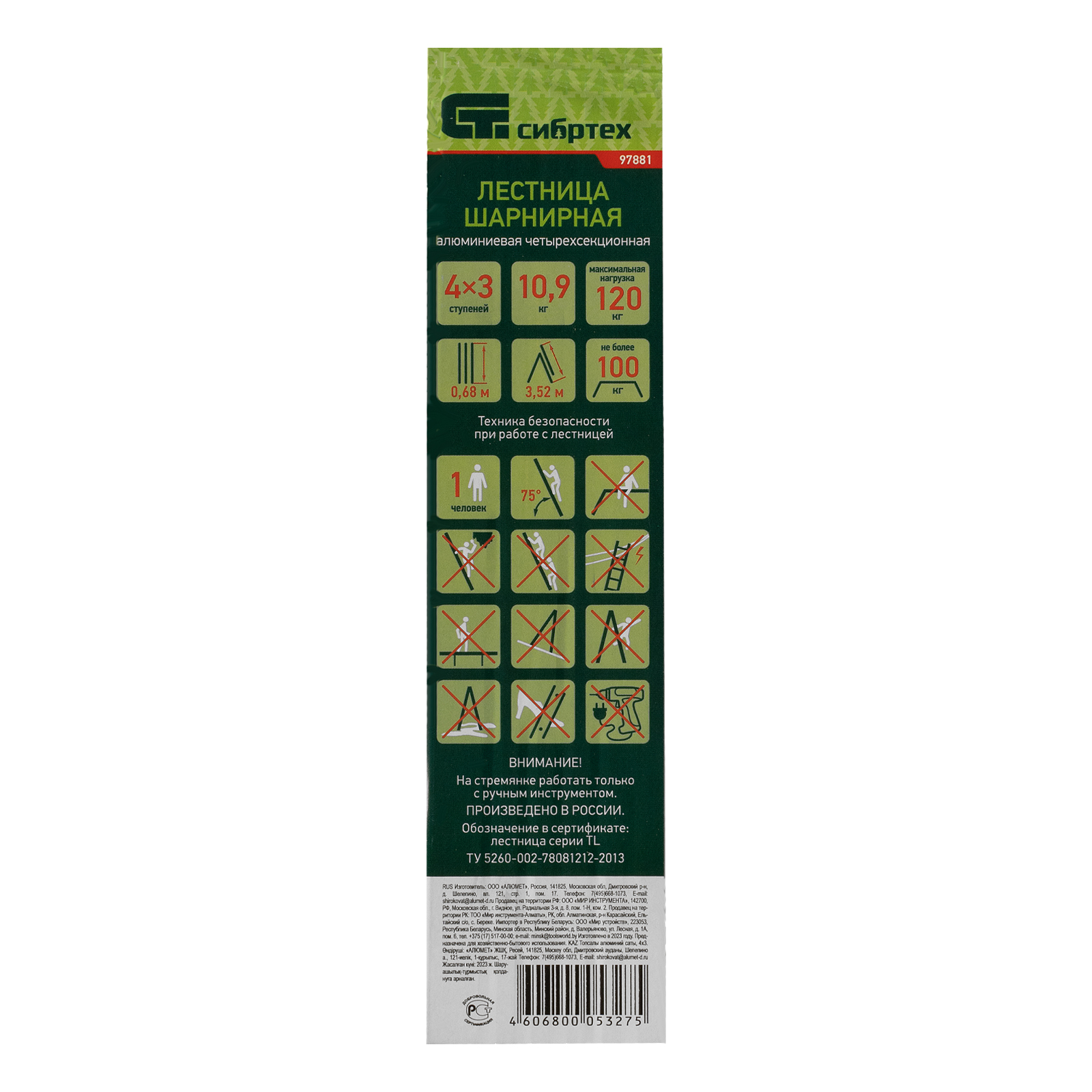 Шарнирная алюминиевая лестница Сибртех 97881 представляет собой 4 секции по 3 ступени, которые можно настроить в нескольких рабочих положениях. Она может использоваться в качестве приставной лестницы, двухсторонней стремянки и помоста. Будет полезна как в быту, так и на небольших стройках, в гараже и магазинах.