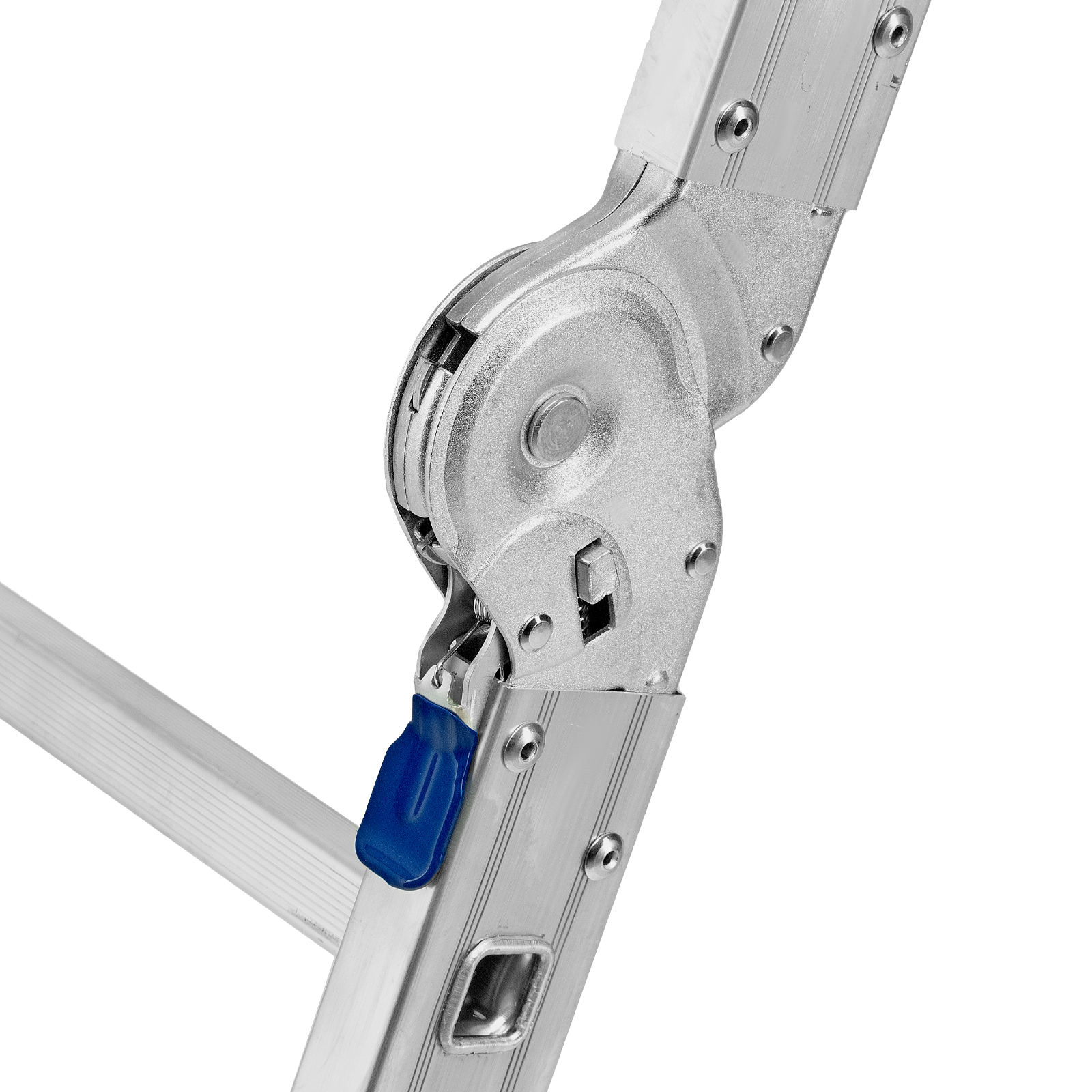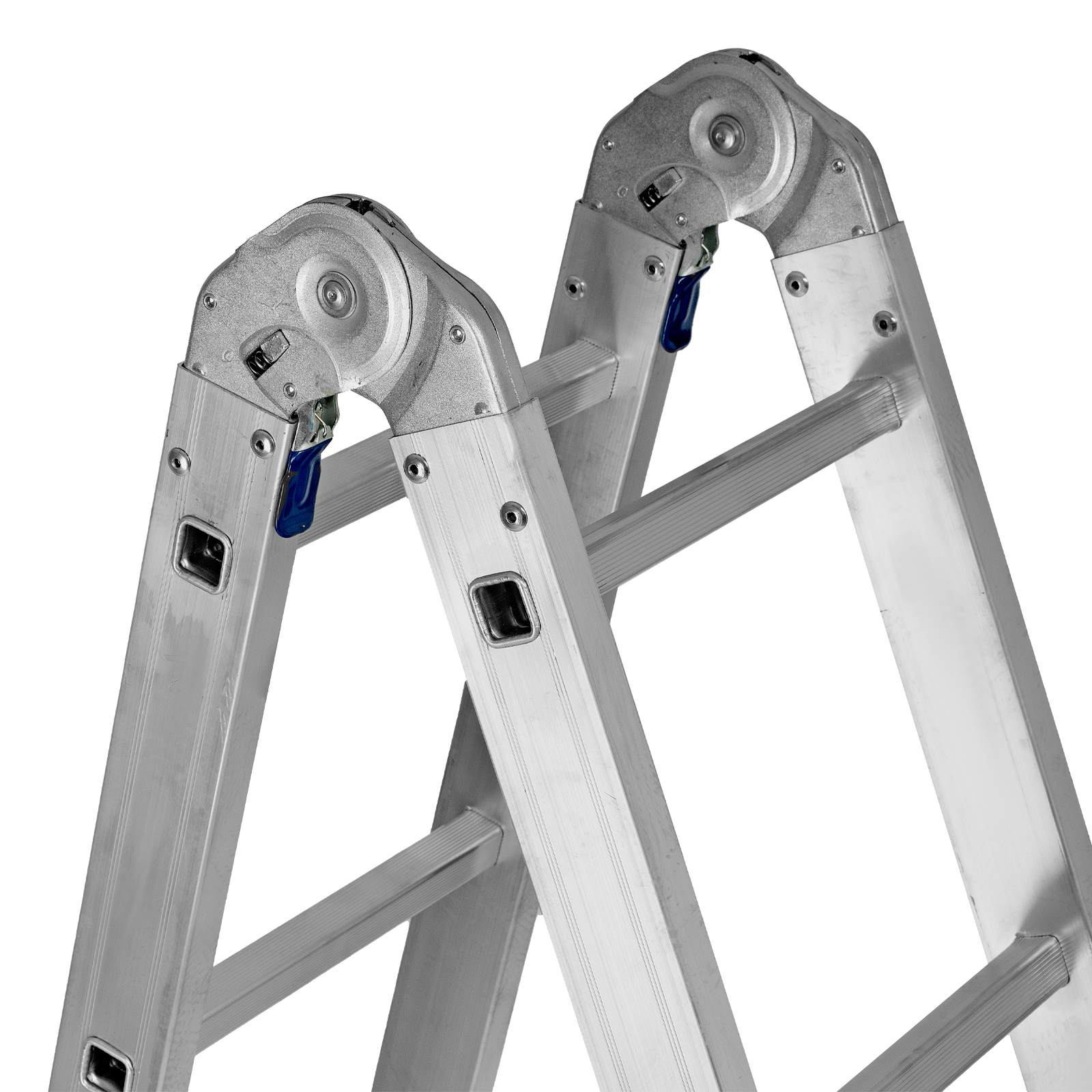 - Надежные шарнирные механизмы — лестница не шатается в рабочих положениях, смена рабочих положений происходит быстро и легко.