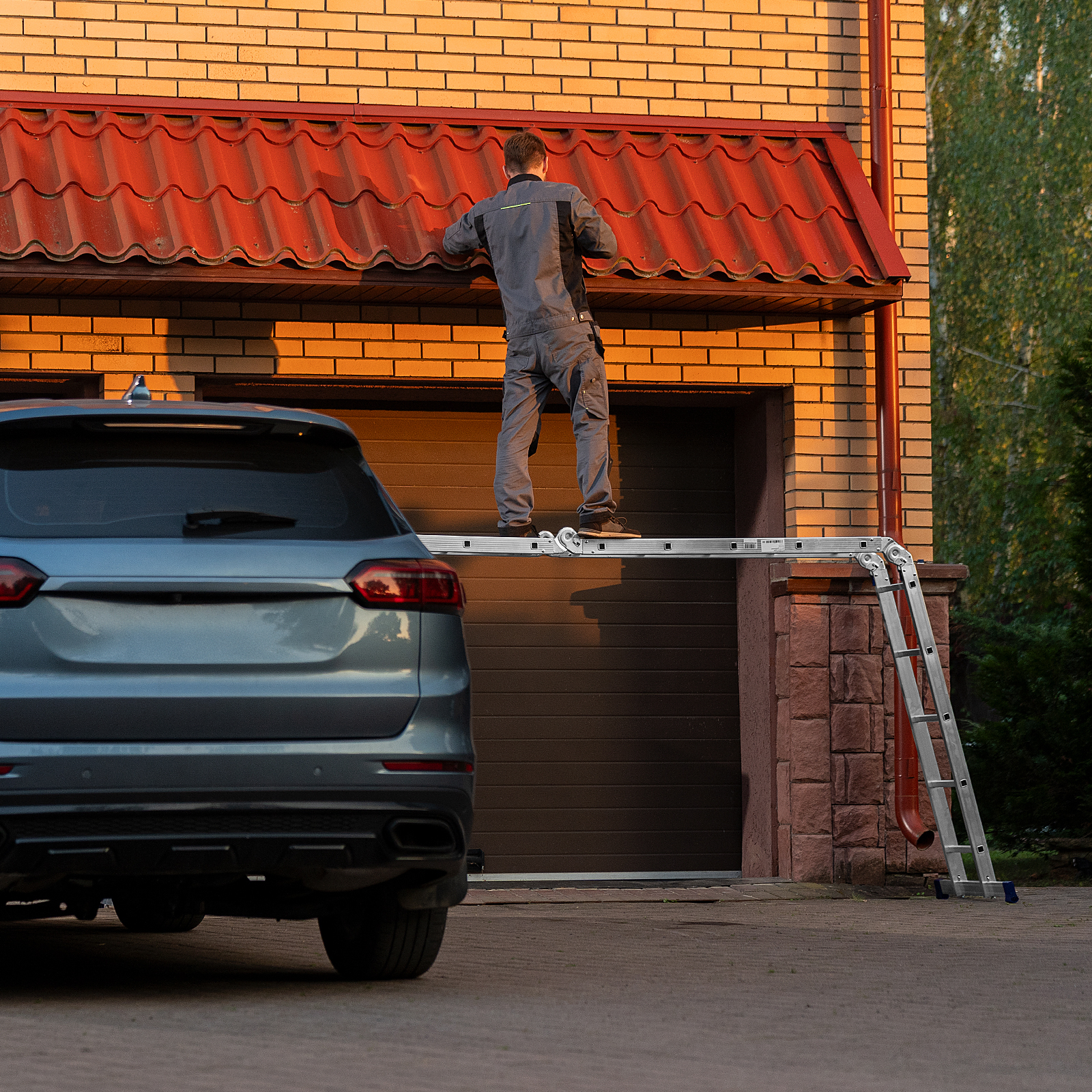 Шарнирная алюминиевая лестница Сибртех 97883 представляет собой 4 секции по 5 ступеней, которые можно настроить в нескольких рабочих положениях. Она может использоваться в качестве приставной лестницы, двухсторонней стремянки и помоста. Будет полезна как в быту, так и на небольших стройках, в гараже и магазинах.