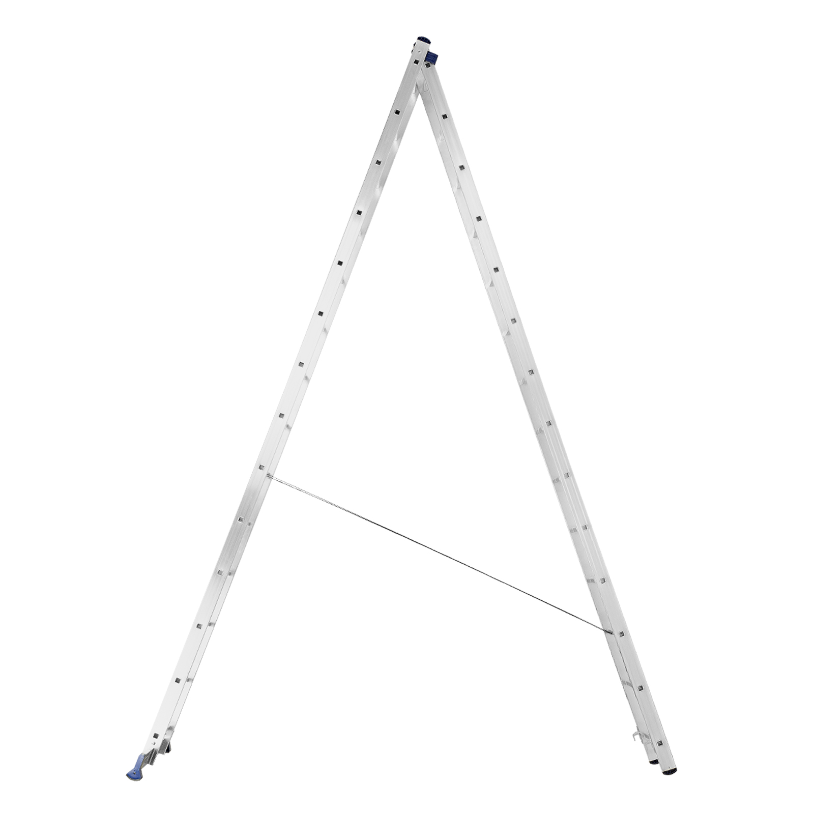- Устойчивость — благодаря съемному стабилизатору лестница ровно стоит на горизонтальной поверхности.