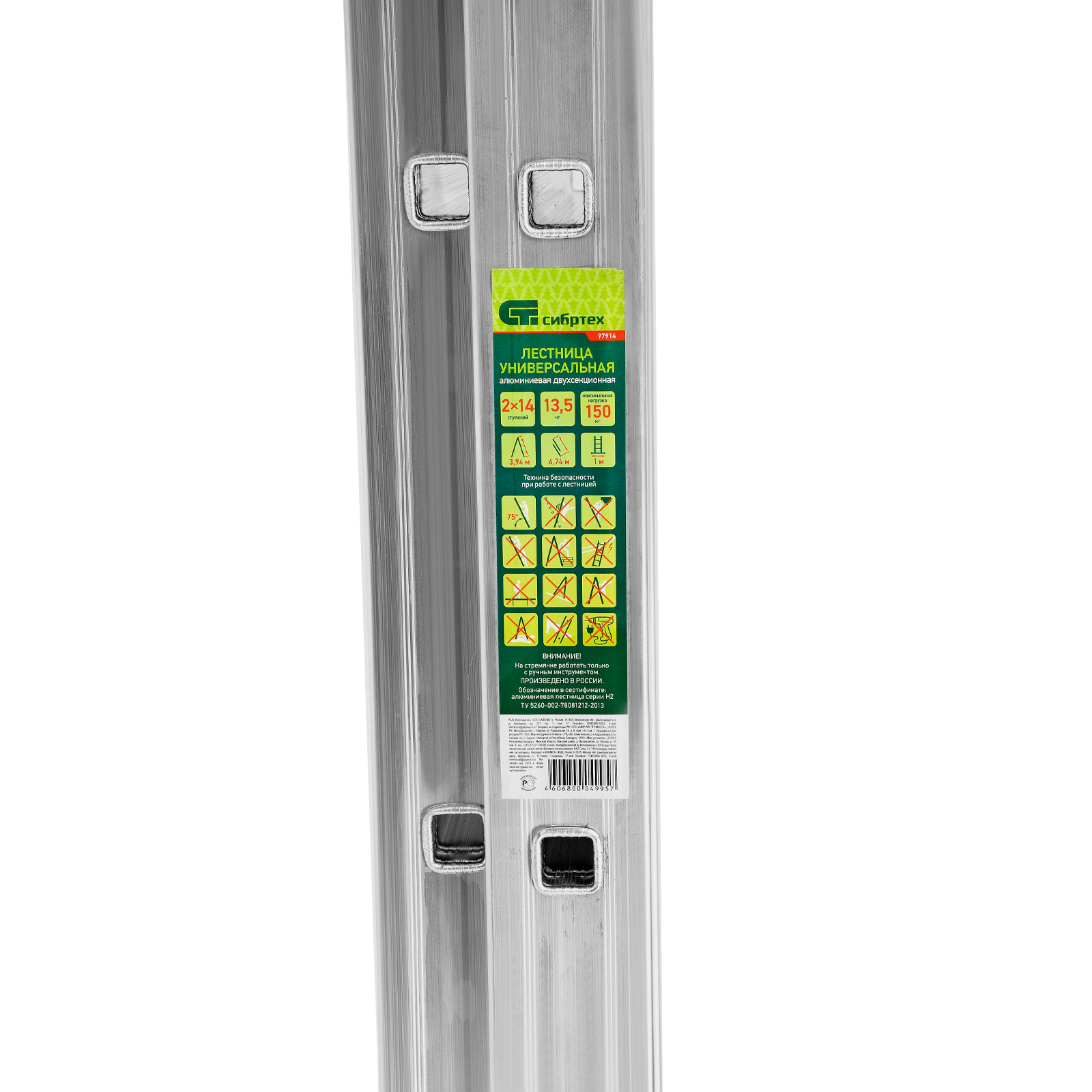 Алюминиевая двухсекционная лестница Сибртех 97914 состоит из 2 секций по 14 ступеней каждая. Легкая и прочная, она используется в качестве двухсторонней стремянки, предназначена для бытового и полупрофессионального применения.