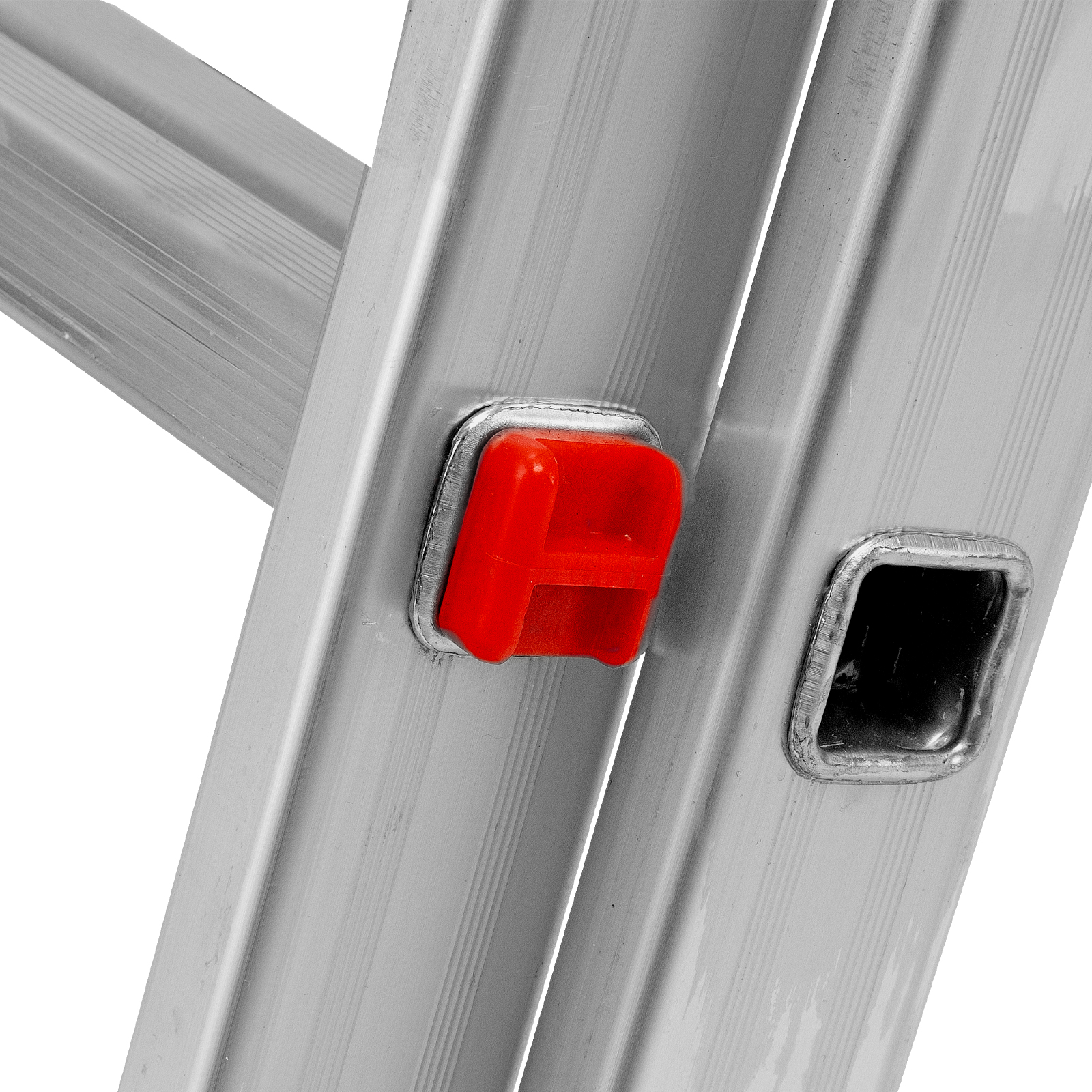 - Устойчивость — лестница оснащена съемным стабилизатором, выравнивающим ее положение на горизонтальных поверхностях.