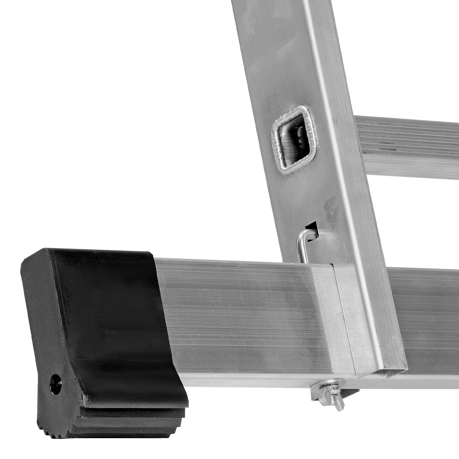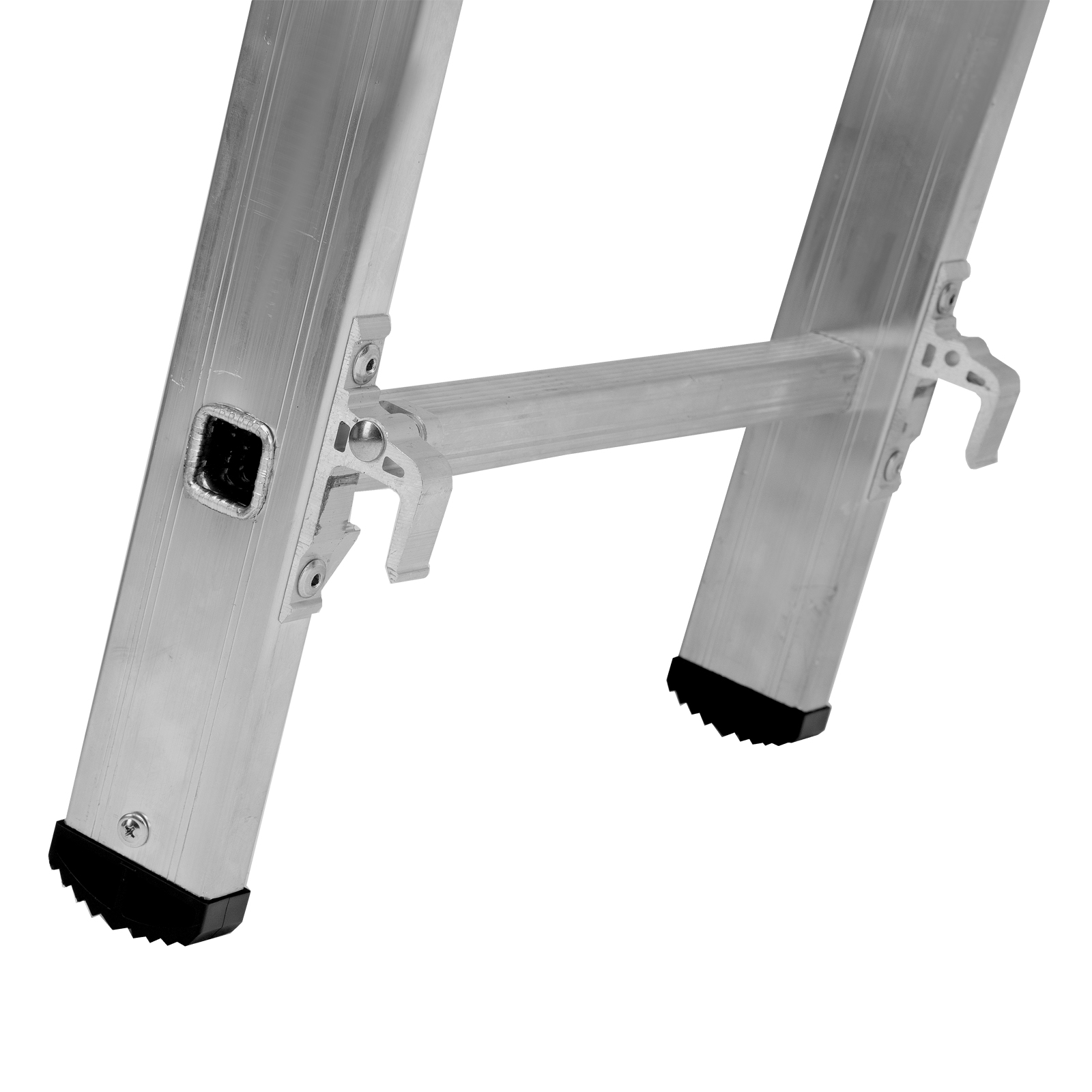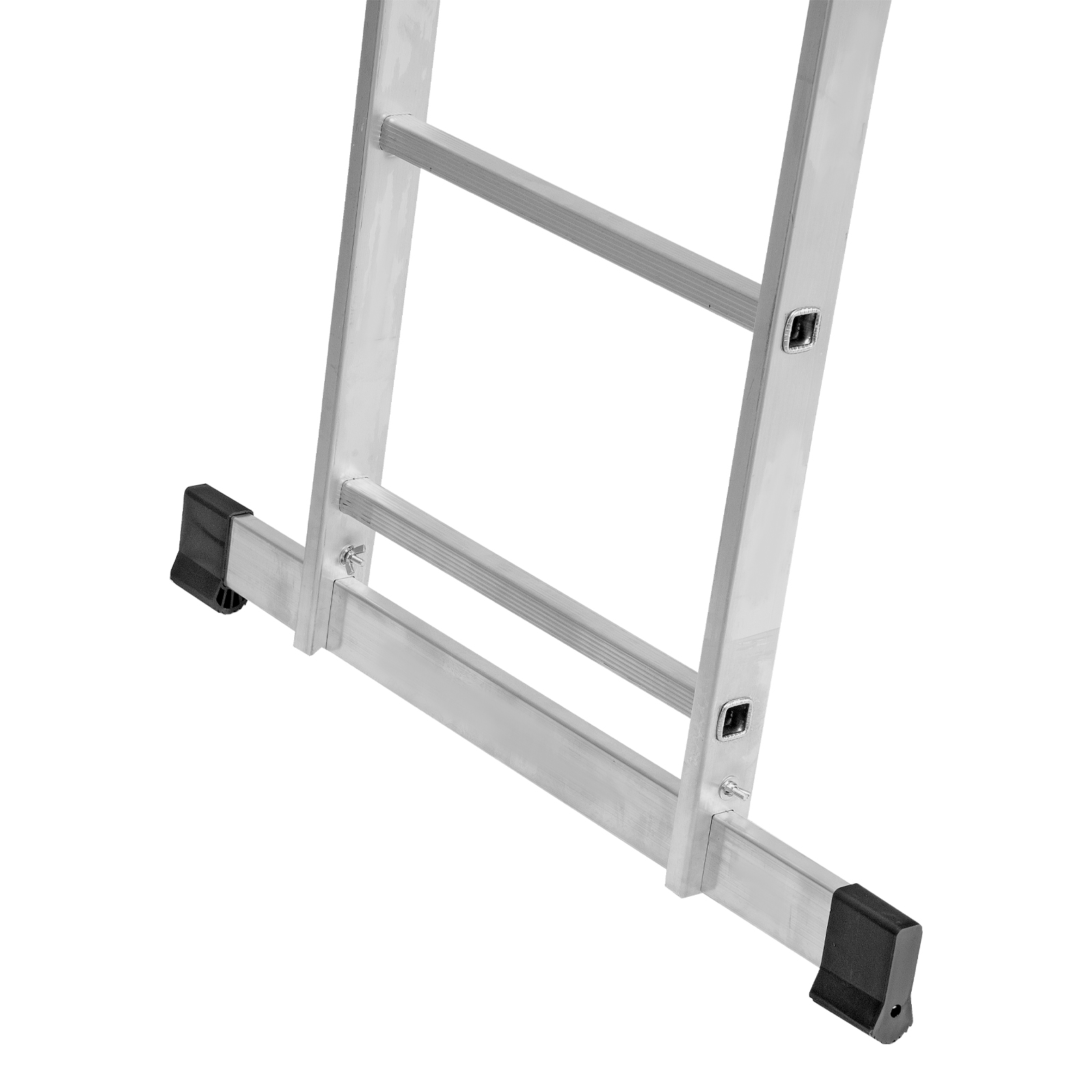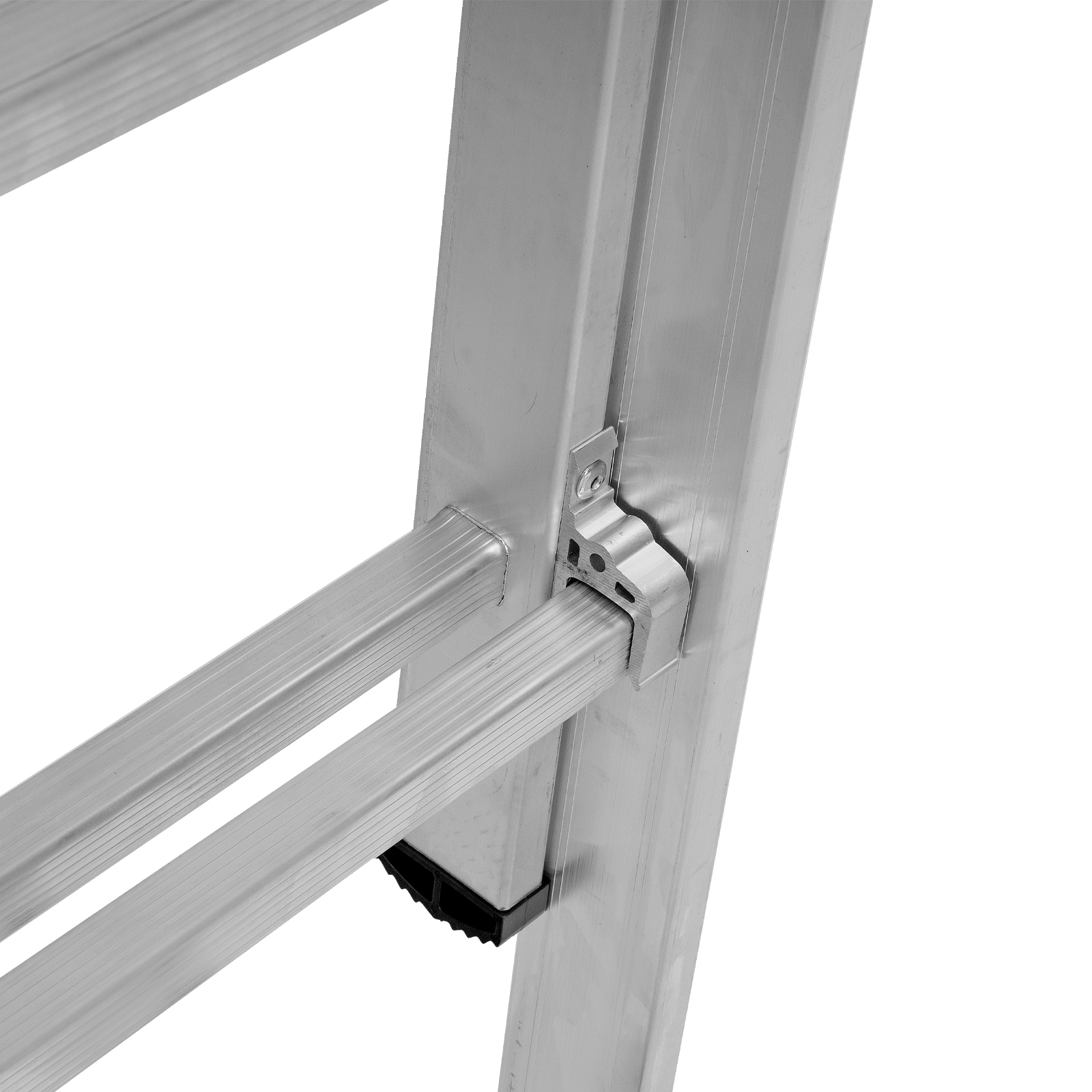 - Устойчивость — лестница оснащена съемным стабилизатором, выравнивающим ее положение на горизонтальных поверхностях.
