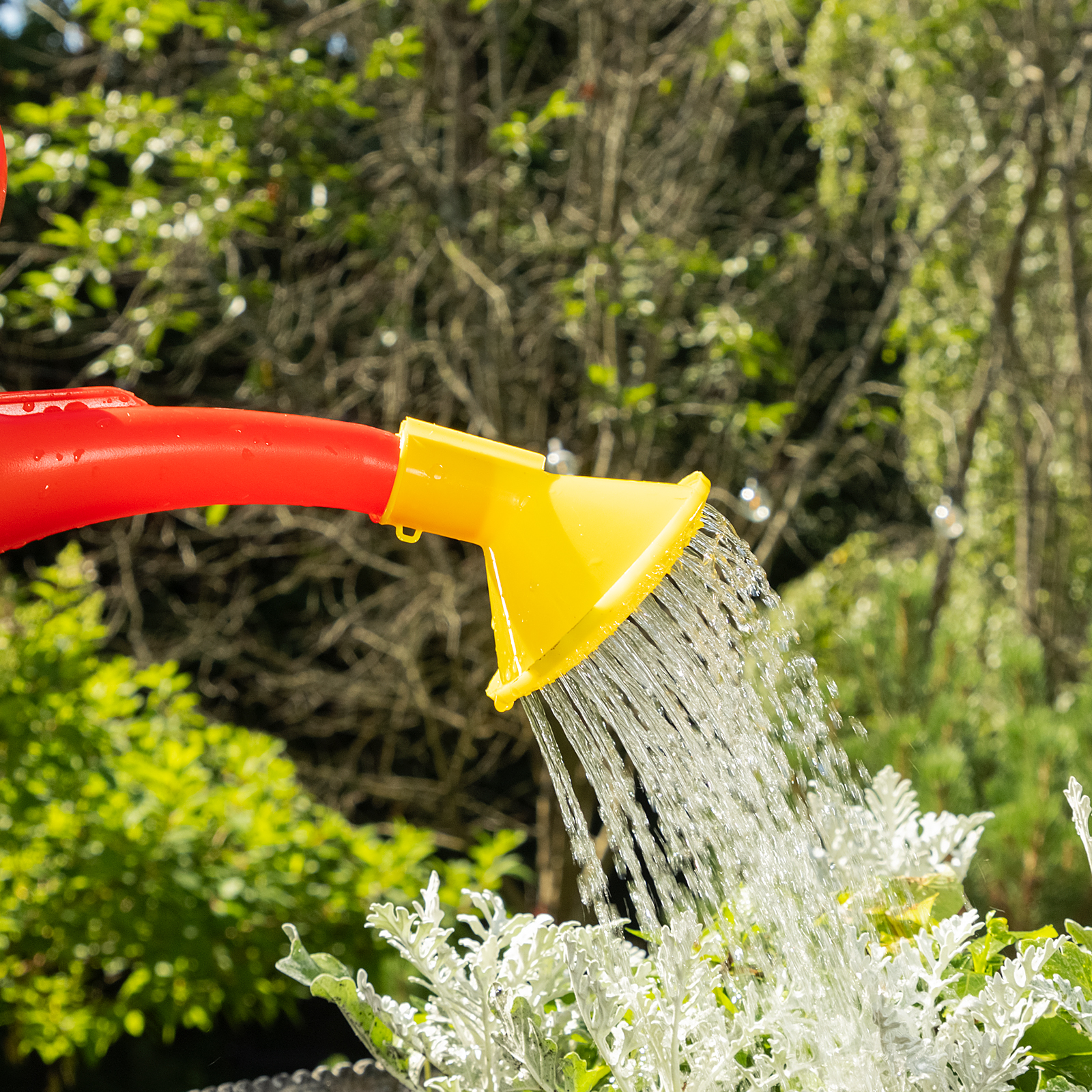 - Равномерный полив — съемная насадка-рассеиватель позволяет орошать посадки без риска размыть землю и оголить корни.