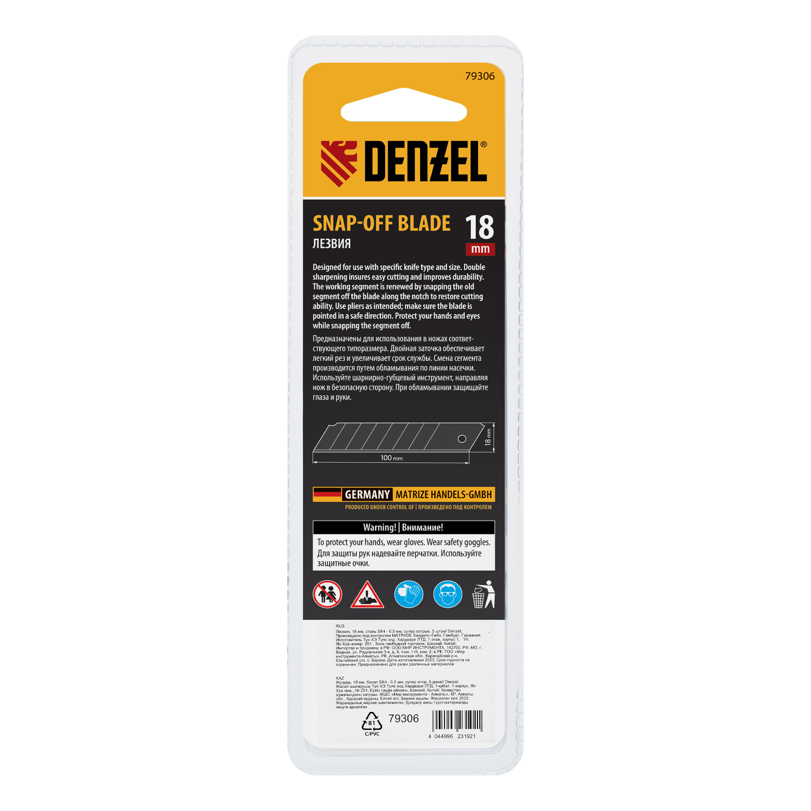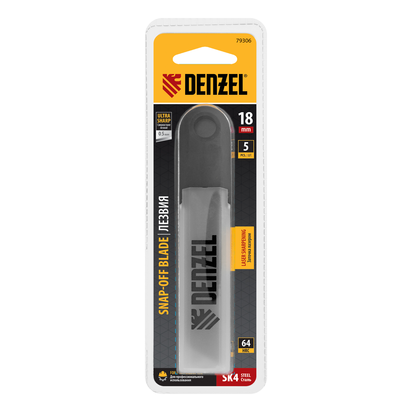 Лезвия, 18 мм, сталь SK4 - 0,5 мм, супер острые, 5 штук Denzel