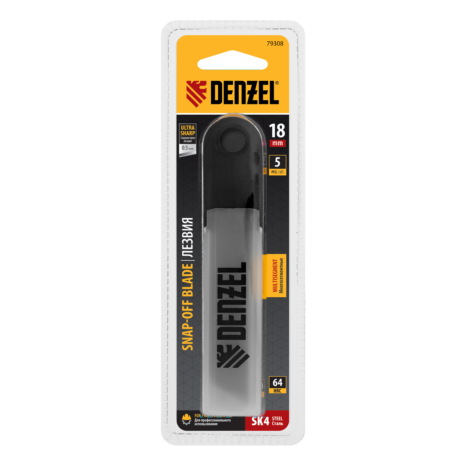 Лезвия, 18 мм, сталь SK4 - 0,5 мм, супер острые, многосегментные, 5 штук Denzel