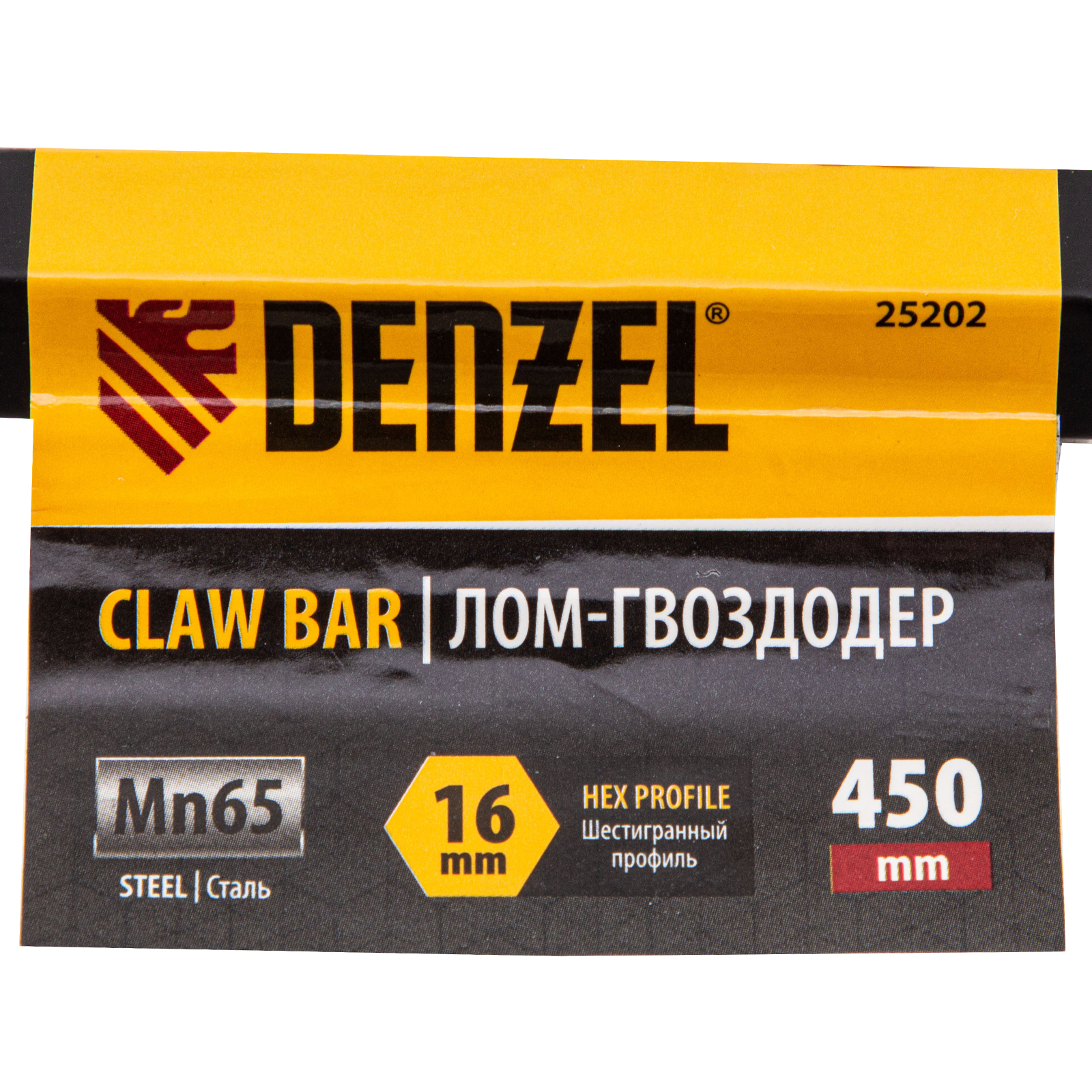 Лом-гвоздодер, 450 мм, шестигранный 16 мм, окрашенный, сталь 65 Denzel
