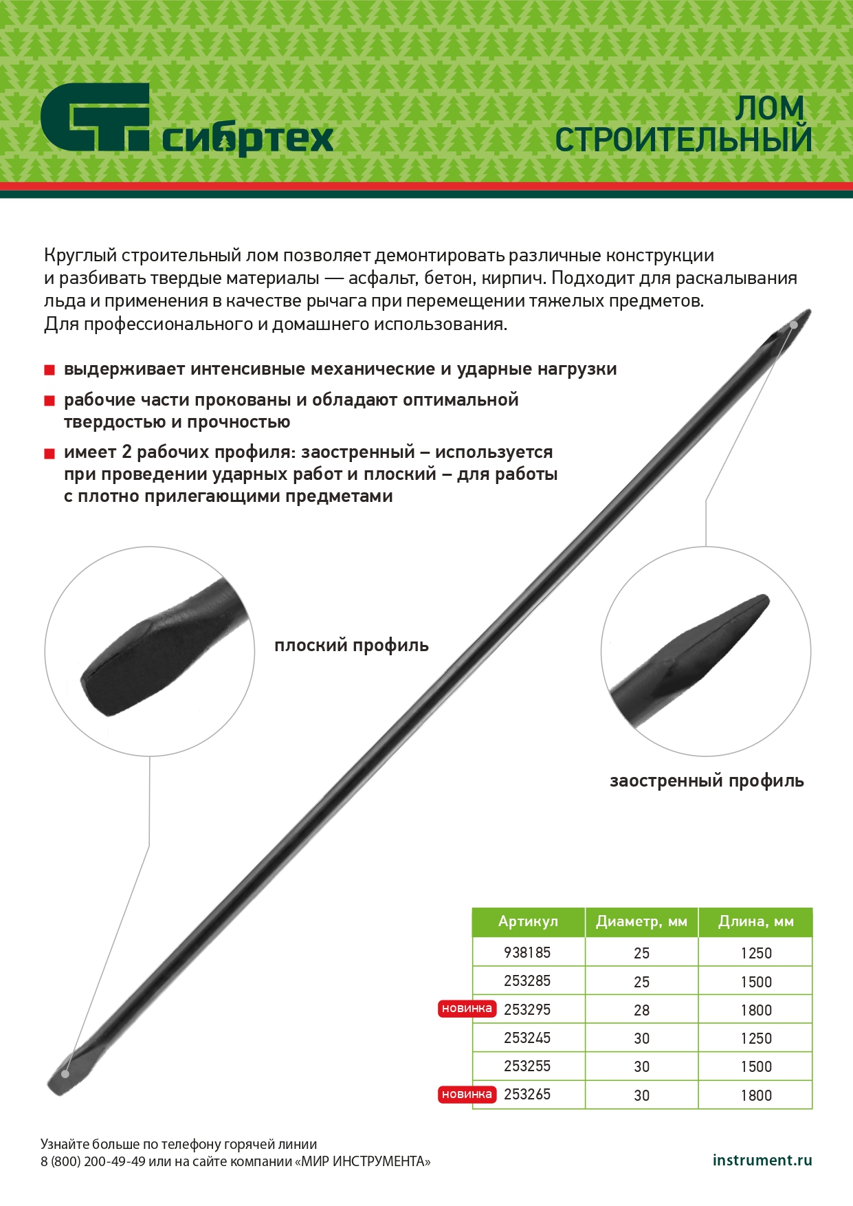 - Износостойкость — рабочие части закалены до оптимальной твердости, поэтому лом подходит для выполнения большого объема работ.