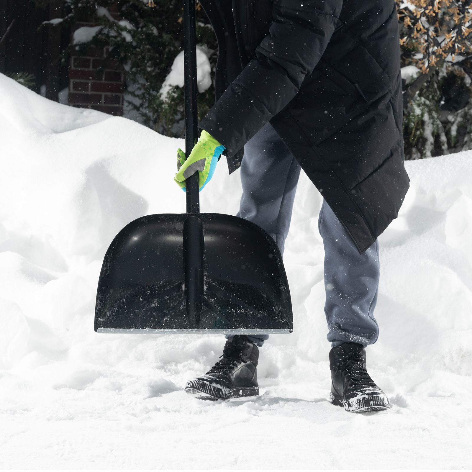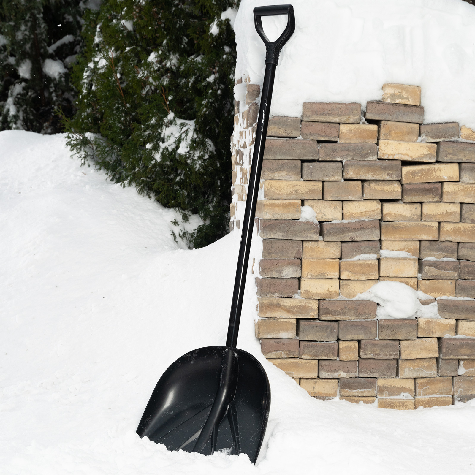 Пластиковая лопата для уборки снега Palisad 614957 размером 385 х 410 х 1350 мм, с алюминиевым черенком, позволяет очистить дорожки в загородном доме, выезд из гаража и т.д. С облегченной лопатой весом 1,1 кг легко справится женщина или подросток. Длина инструмента составляет 1350 мм, что позволяет снизить нагрузку на спину.