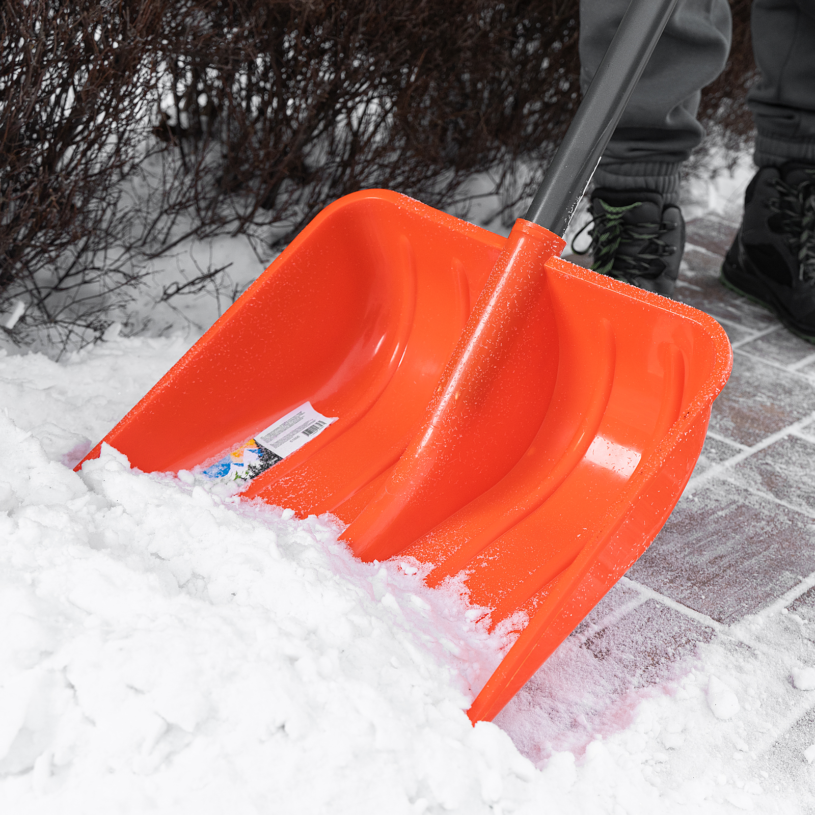 Пластиковая лопата Сибртех 61666 размером 400 х 405 х 1380 мм, со стальным черенком, используется для уборки снега на занесенных дорожках, тротуарах, подъездных путях. Вместительный усиленный ковш с высокими бортиками позволяет быстро справиться с работой.