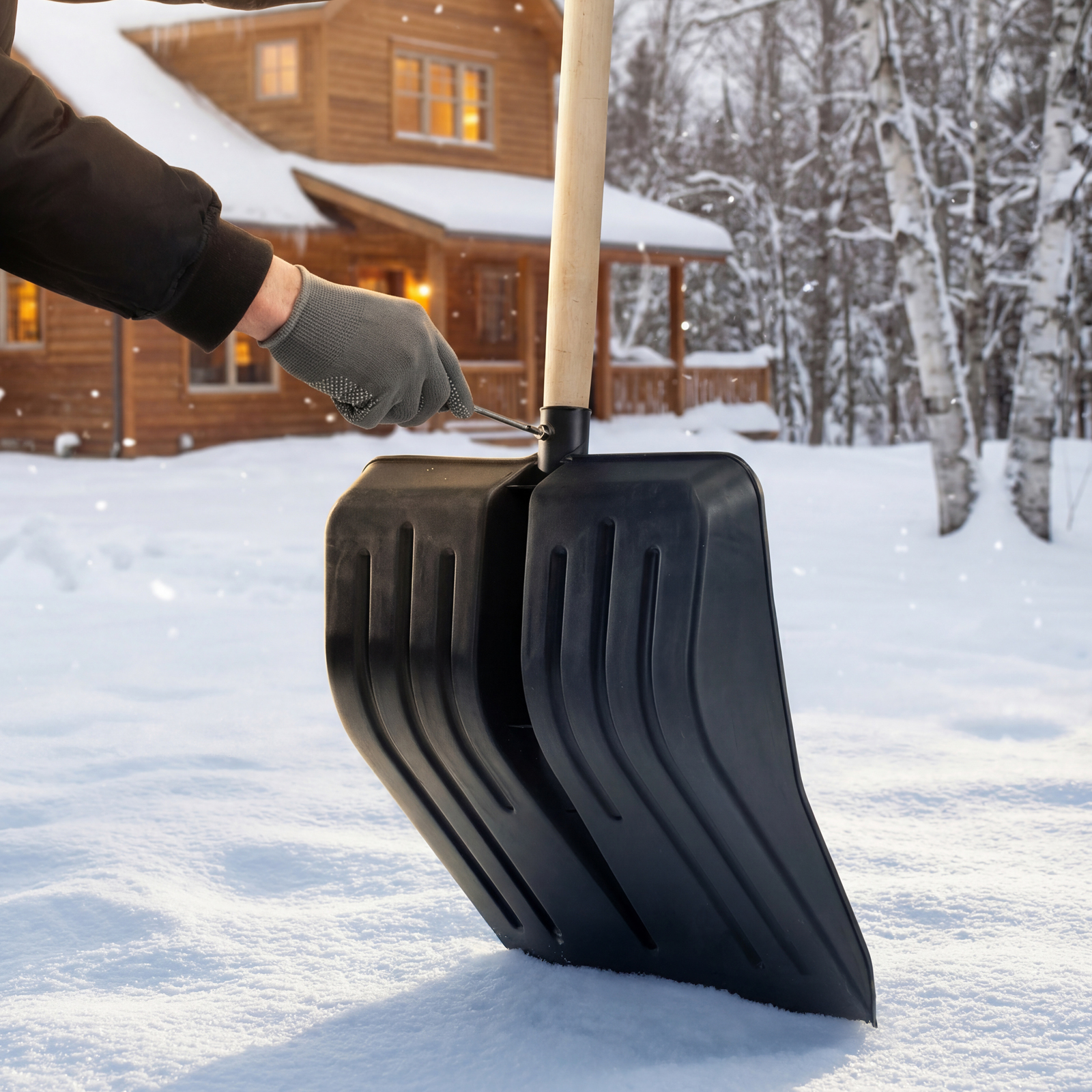 - Эффективная работа — кромка ковша защищена от истирания алюминиевой окантовкой и легко проникает в плотный снег и наст.