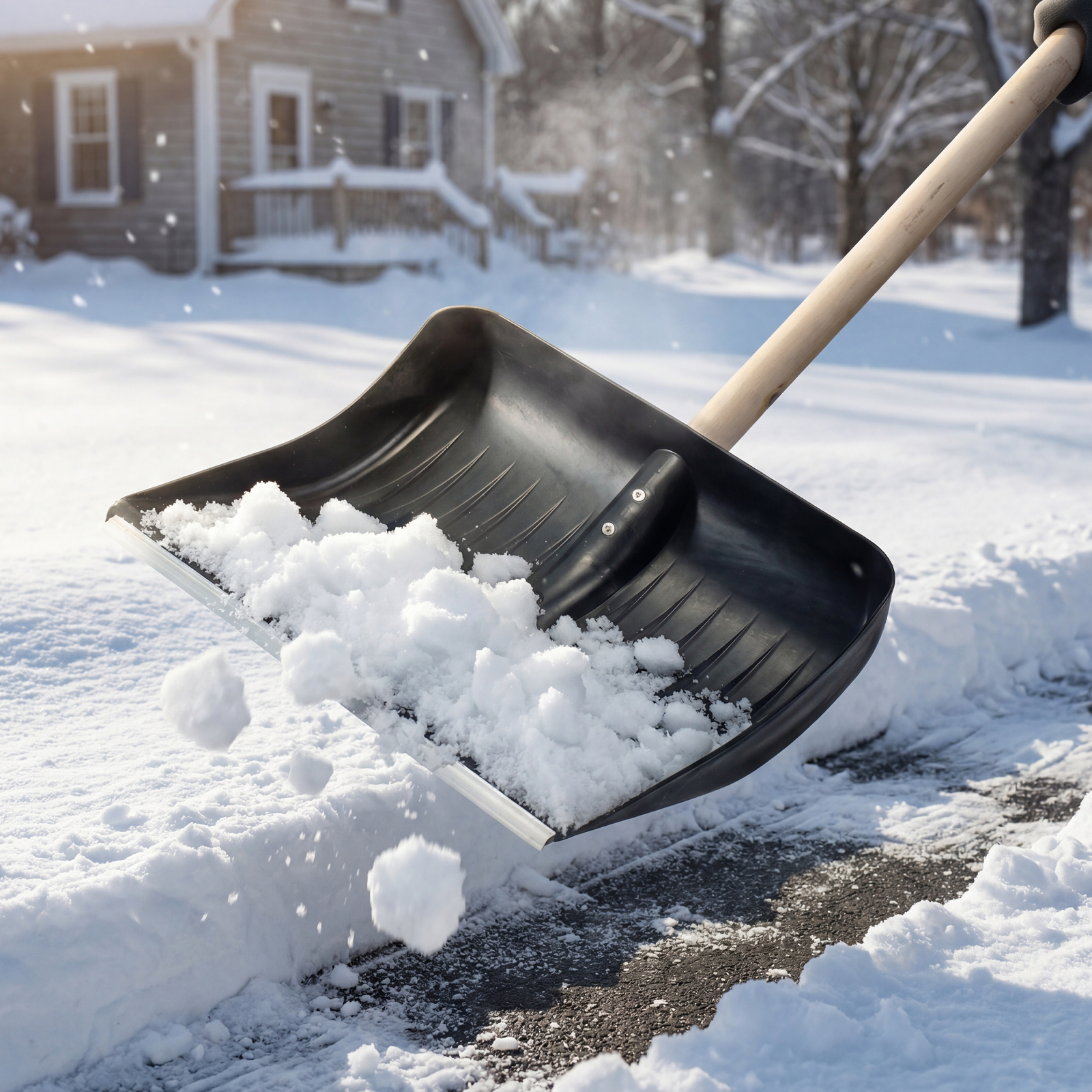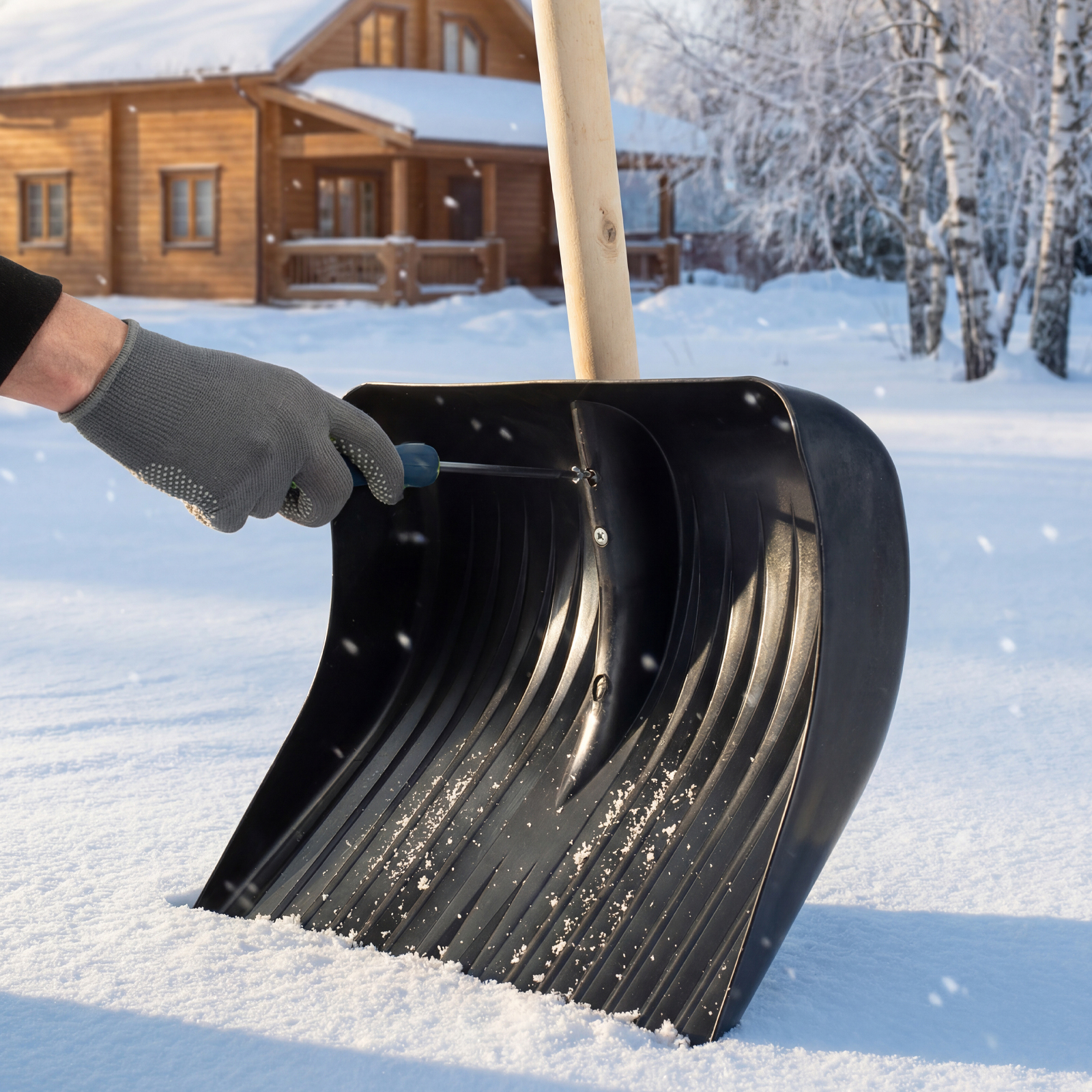 - Кромка ковша защищена от истирания алюминиевой окантовкой и легко проникает в плотный снег и наст.