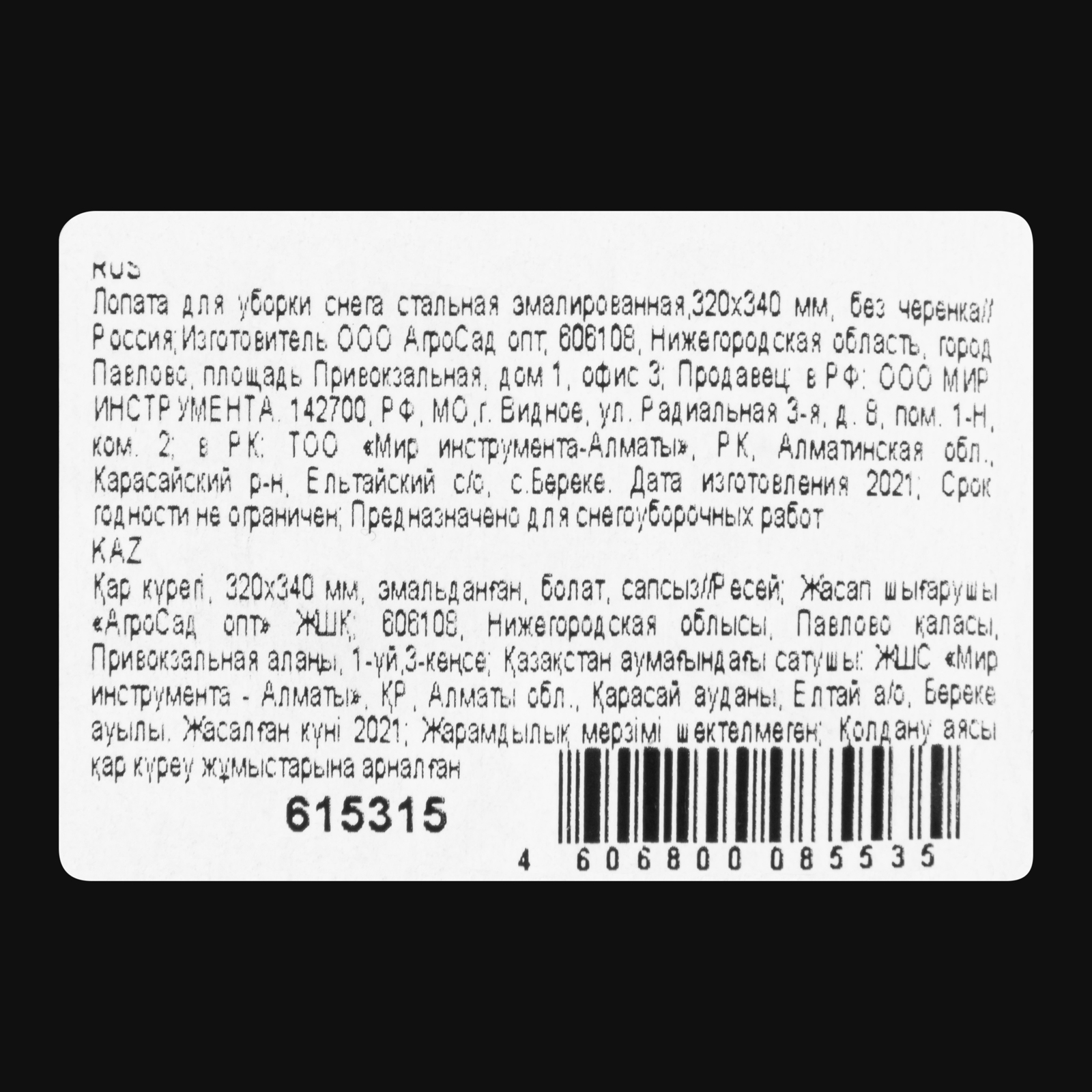 Лопата для уборки снега стальная эмалированная, 320 х 340 мм, без черенка,
