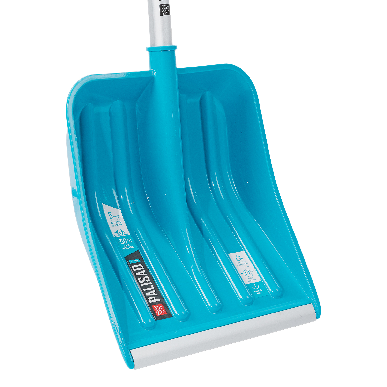 Лопата для уборки снега, полипропилен, 350х405х1300мм, алюминиевый черенок, ПВХ накладка, LUXE Palisad