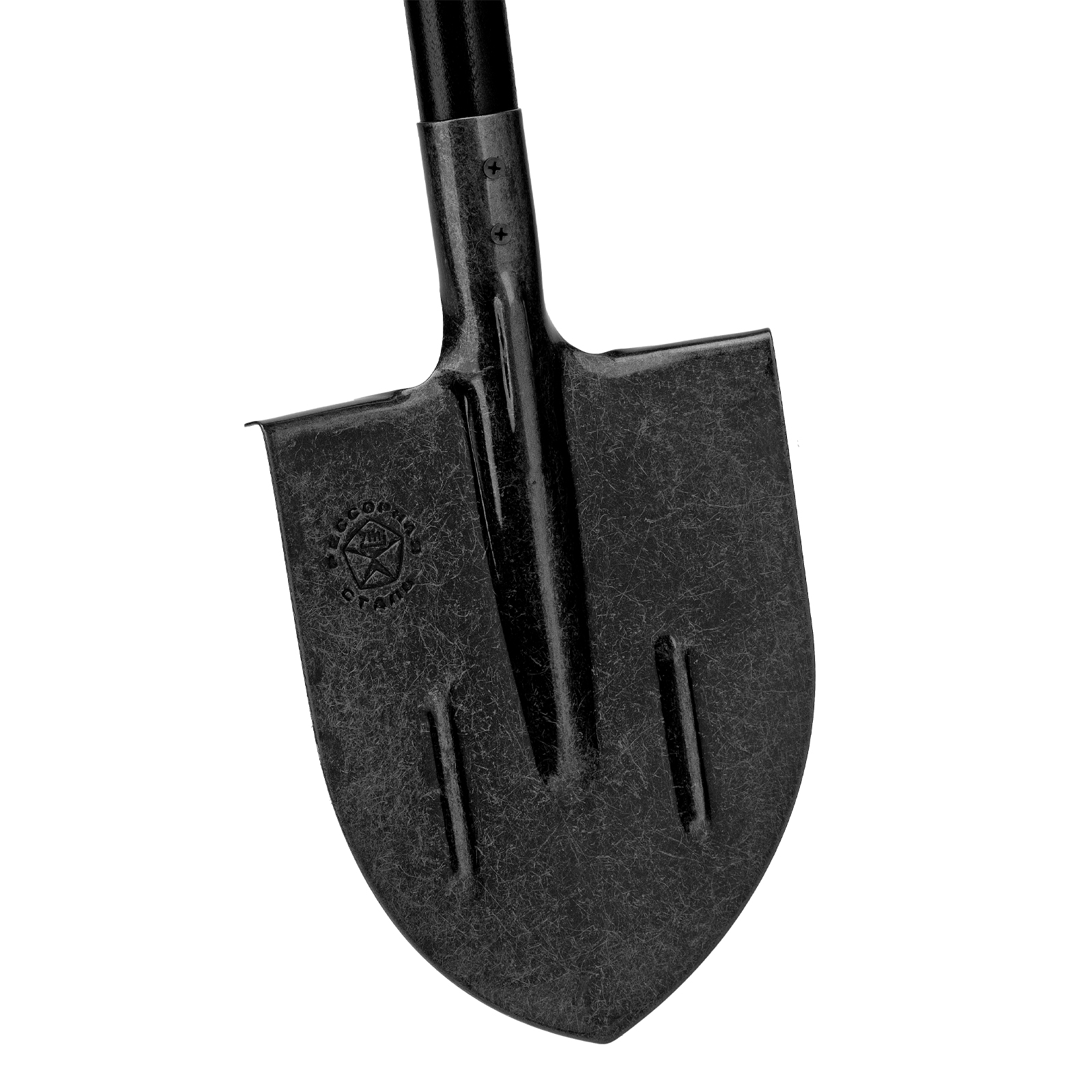 - Прочность и долговечность — полотно дополнительно усилено ребрами жесткости, черенок изготовлен из древесины 1 сорта и окрашен для защиты от рассыхания и воздействия влаги.