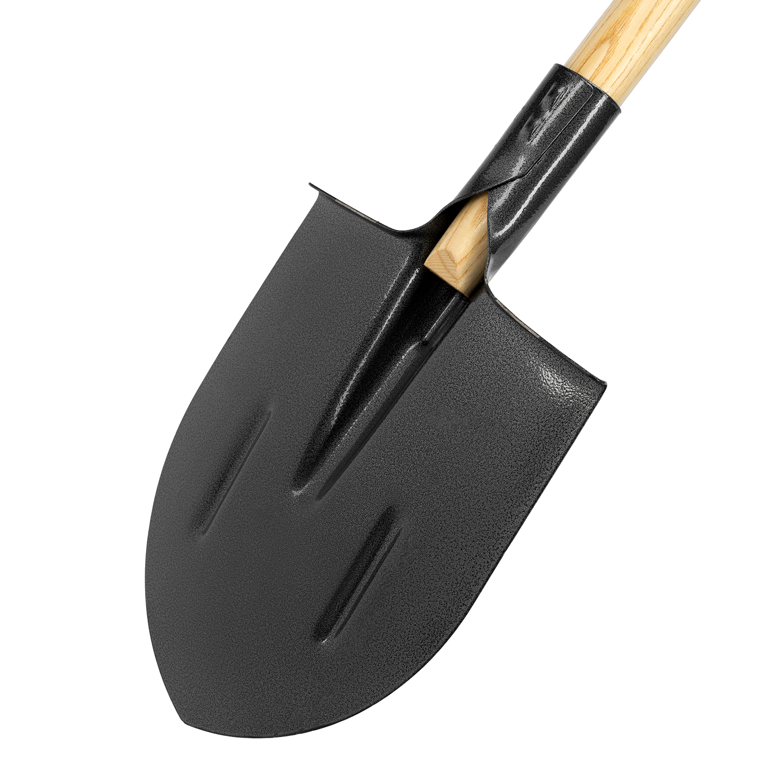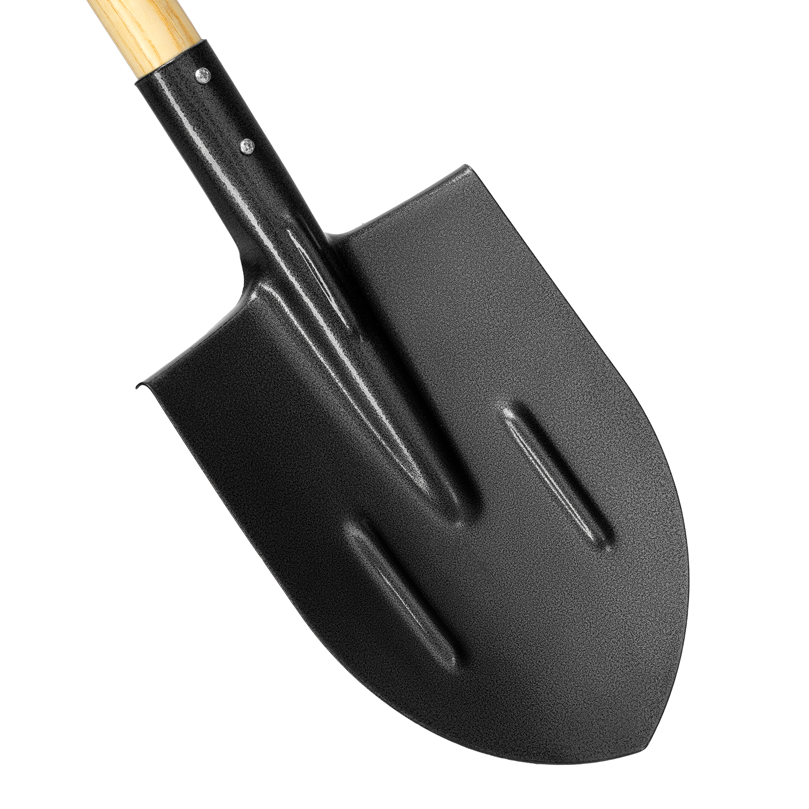 - Высокая прочность на излом — лопата оснащена цельновырубной тулейкой и полотном клиновидной формы с ребрами жесткости.