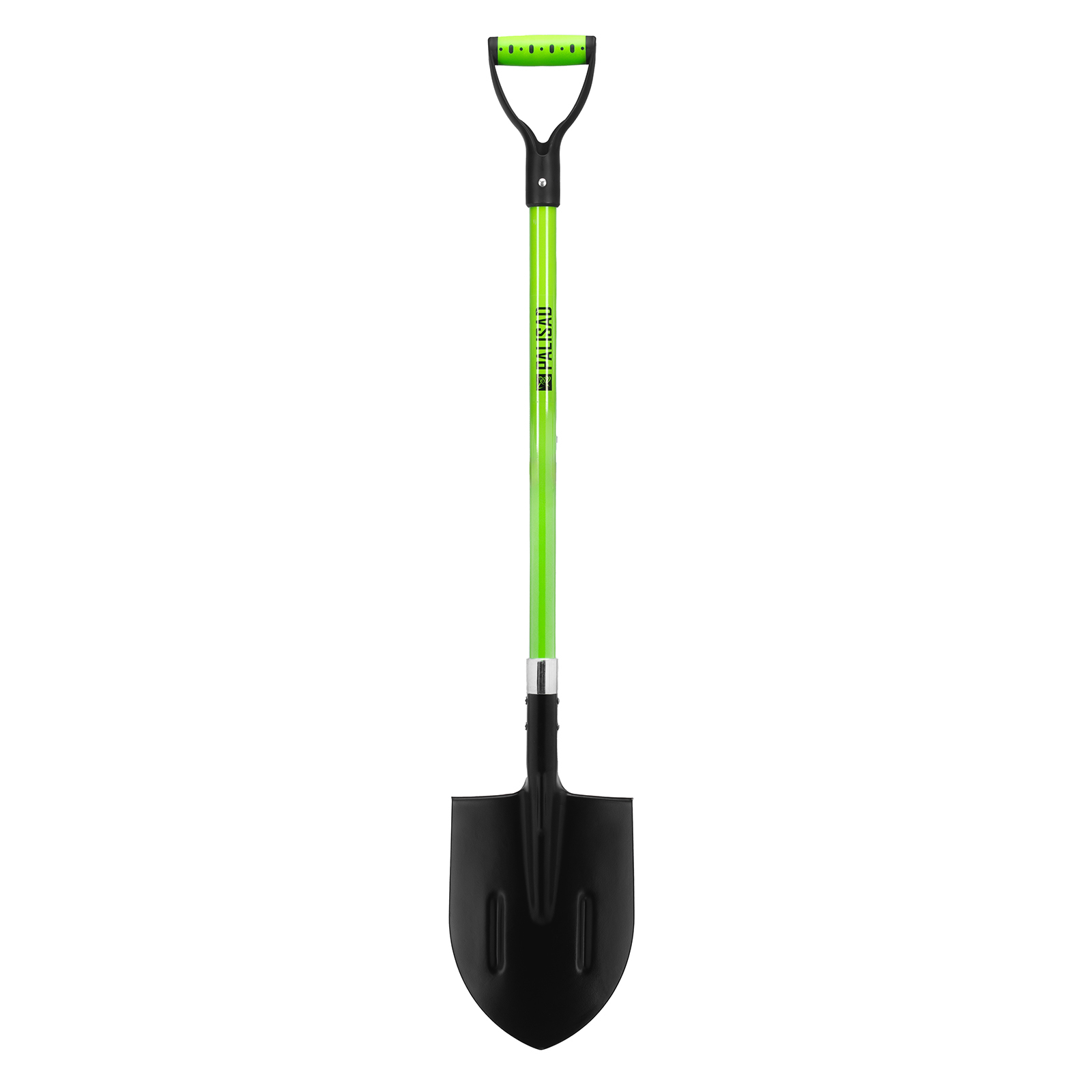 - Продуманная конструкция — фибергласовый черенок не утяжеляет лопату и не разрушается под действием ультрафиолета, а удлиненная цельновырубная тулейка предотвращает его излом.