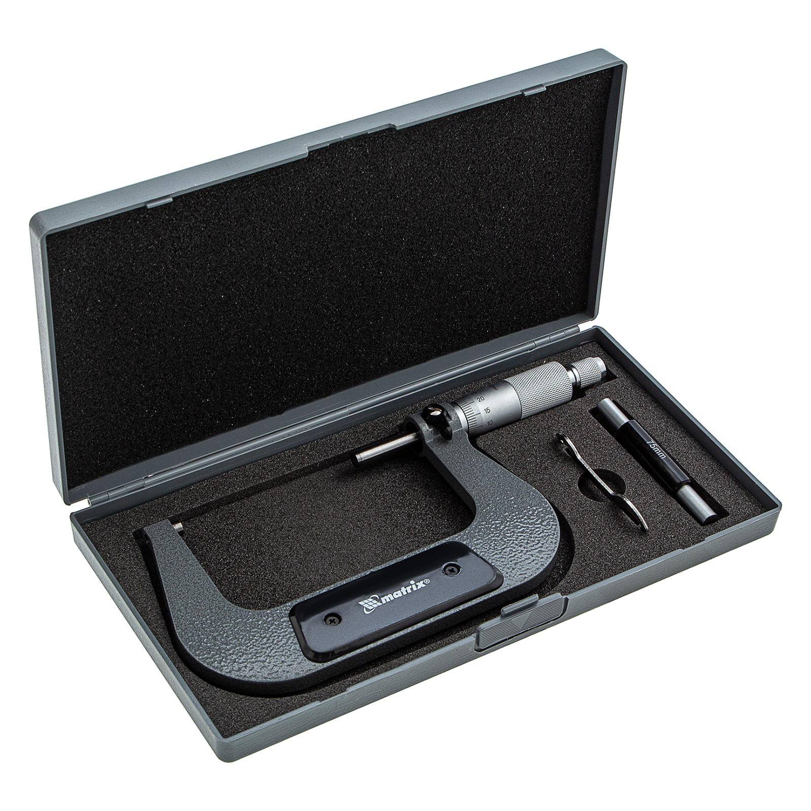 Микрометр механический Matrix 317005 используется для измерения толщины листового металла и деталей размером 75-100 мм. Обеспечивает высокую точность результатов — шаг измерения составляет 0,01 мм с допустимой погрешностью ±0,004 мм. Комплектуется установочной мерой, позволяющей при необходимости произвести настройку прибора. Микрометр будет полезен на производстве, в слесарной мастерской и автосервисе.