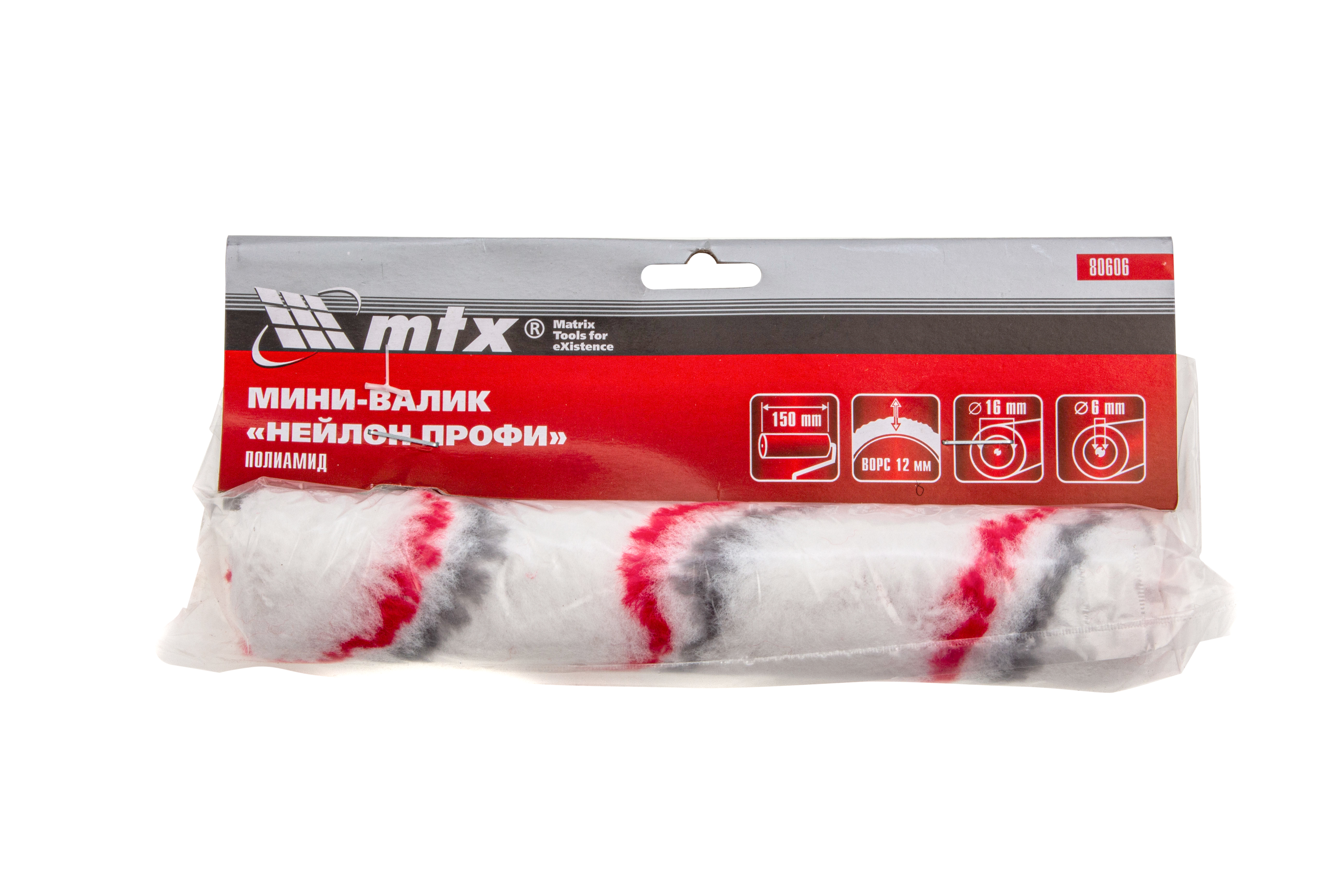 Сменный мини-валик сменный MTX «НЕЙЛОН Профи» 80606 из полиамида, с ворсом 12 мм, шириной 150 мм и диаметром ролика 16 мм подходит для бюгелей диаметром 6 мм. Предназначен для окрашивания небольших участков и труднодоступных мест. Валик может использоваться как с водно-дисперсионными, так и органорастворимыми красками.