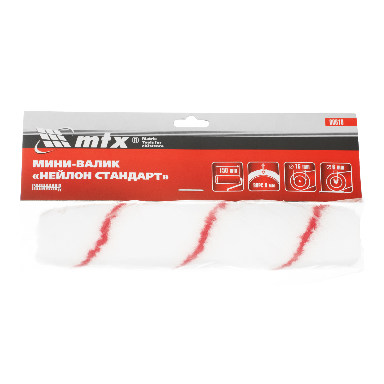 Мини-валик сменный, "Нейлон Стандарт", 150 мм, ворс 9 мм, D 16 мм, D ручки 6 мм, полиамид MTX