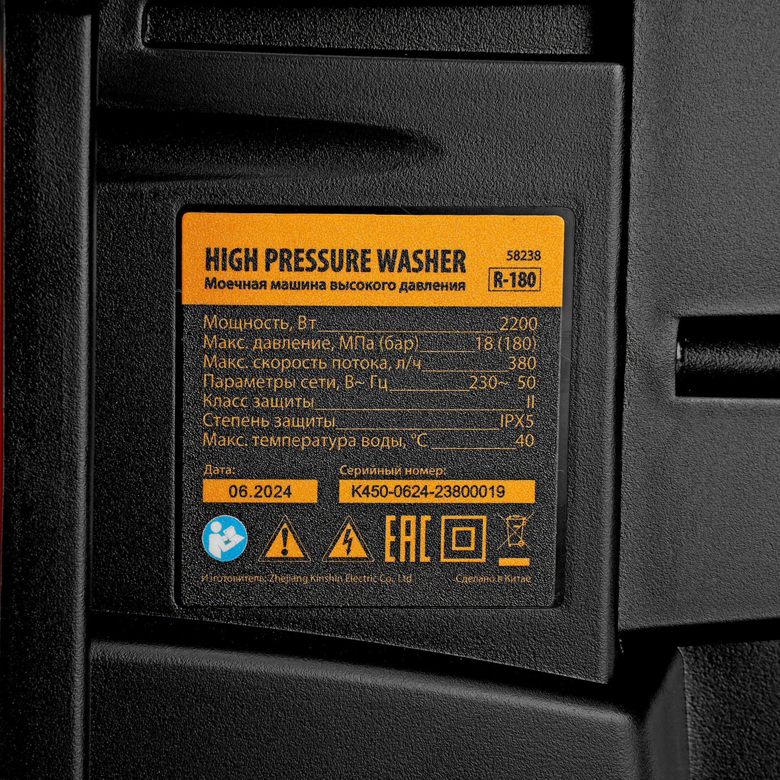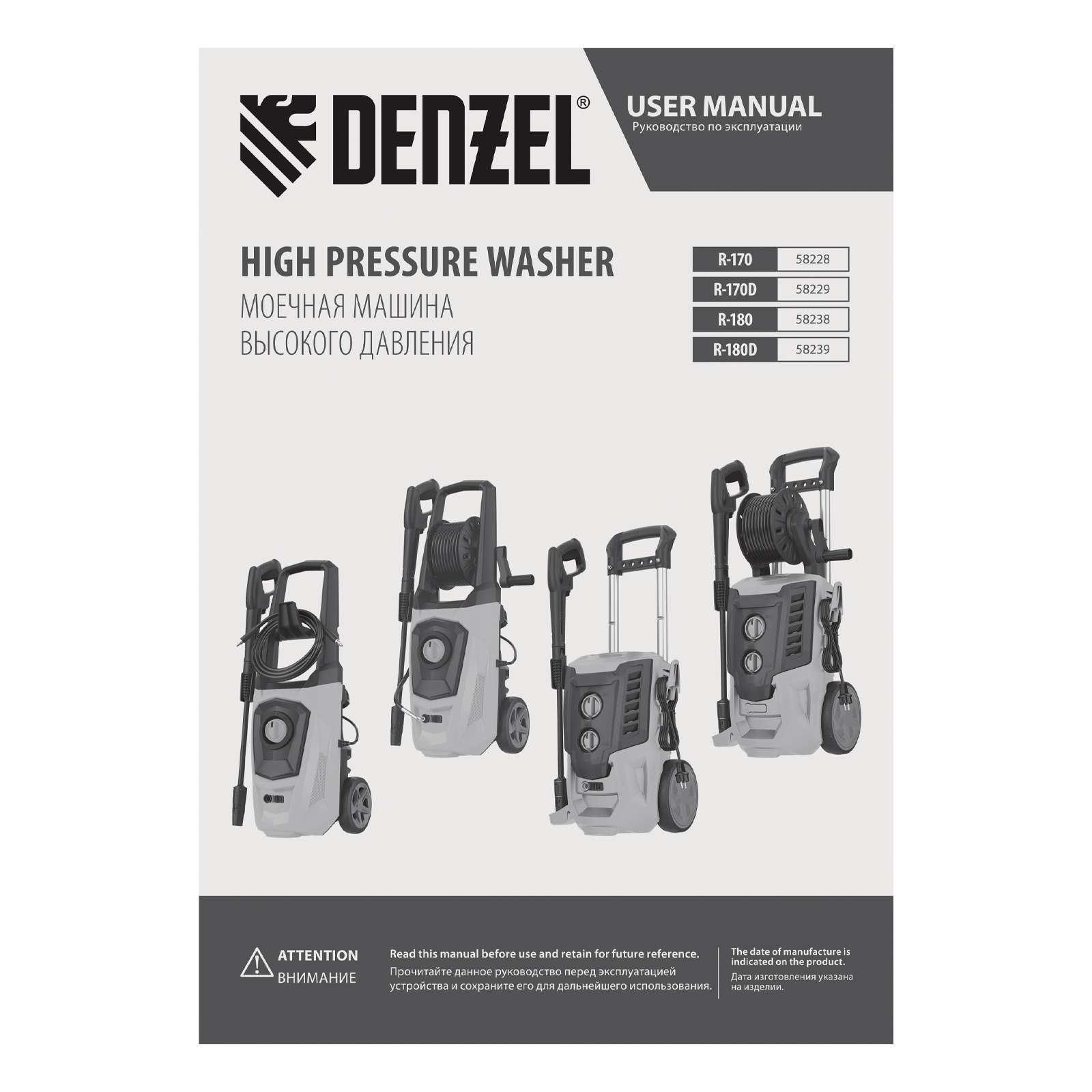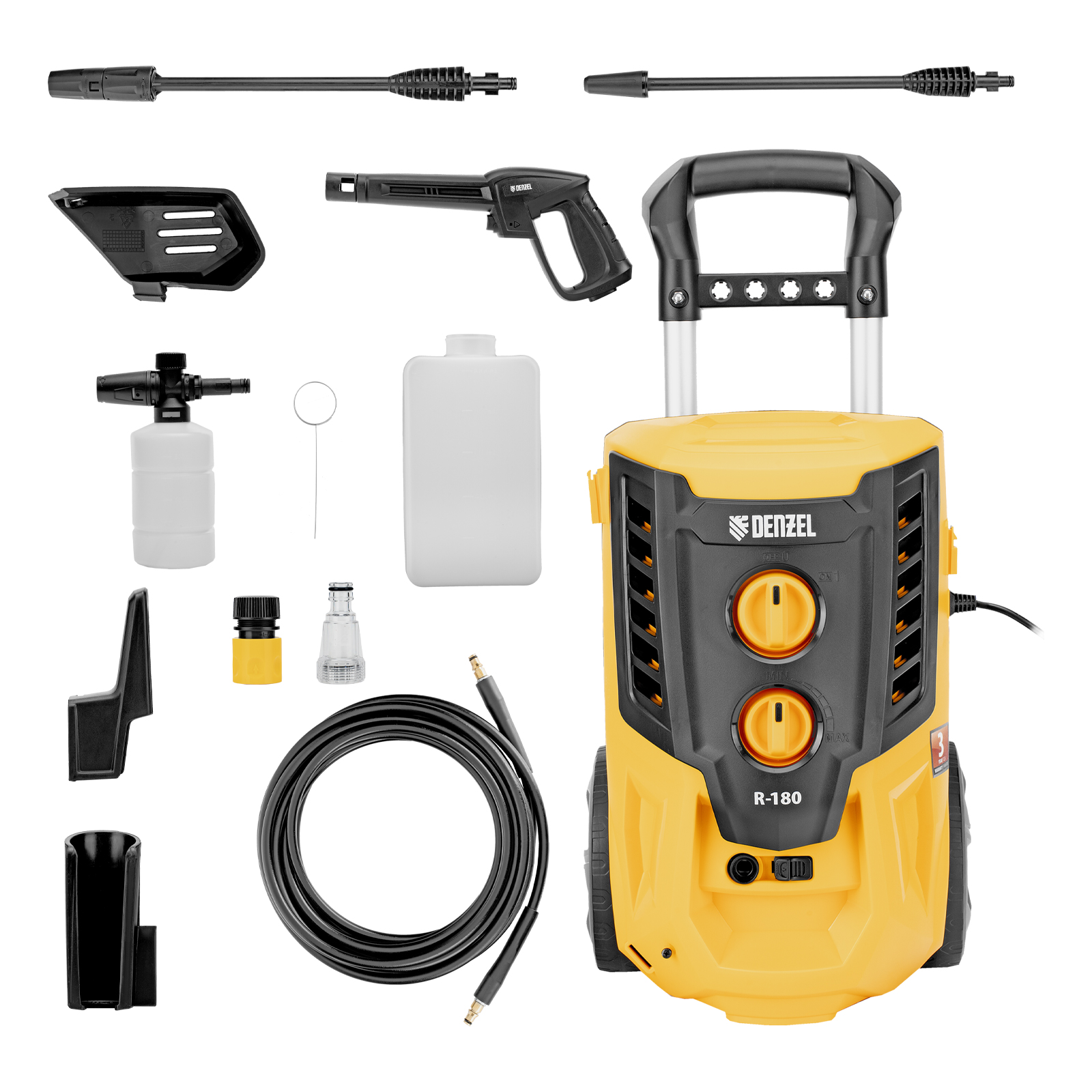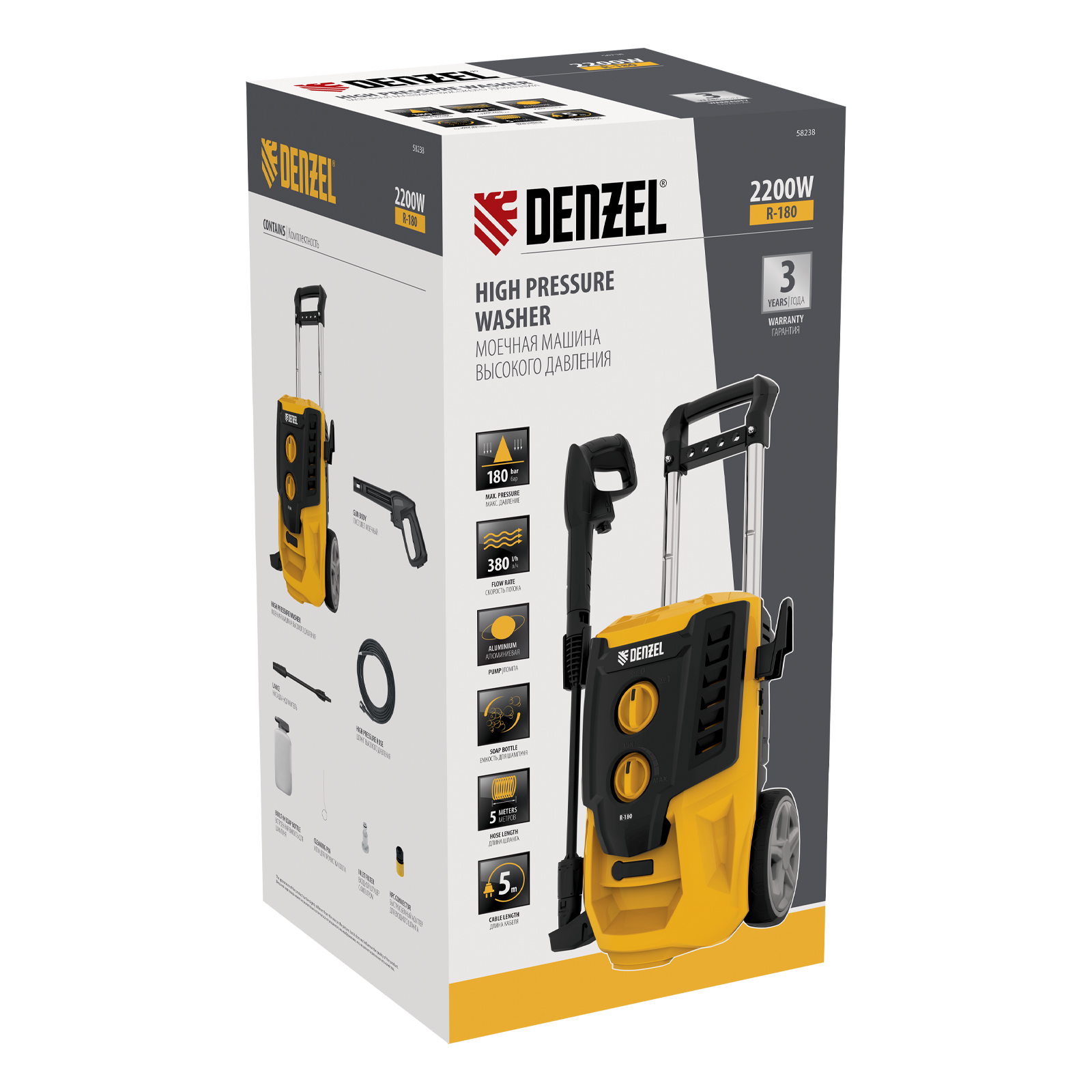 Моечная машина высокого давления R-180, 2200 Вт, 180 бар, 380 л/ч, колесная Denzel